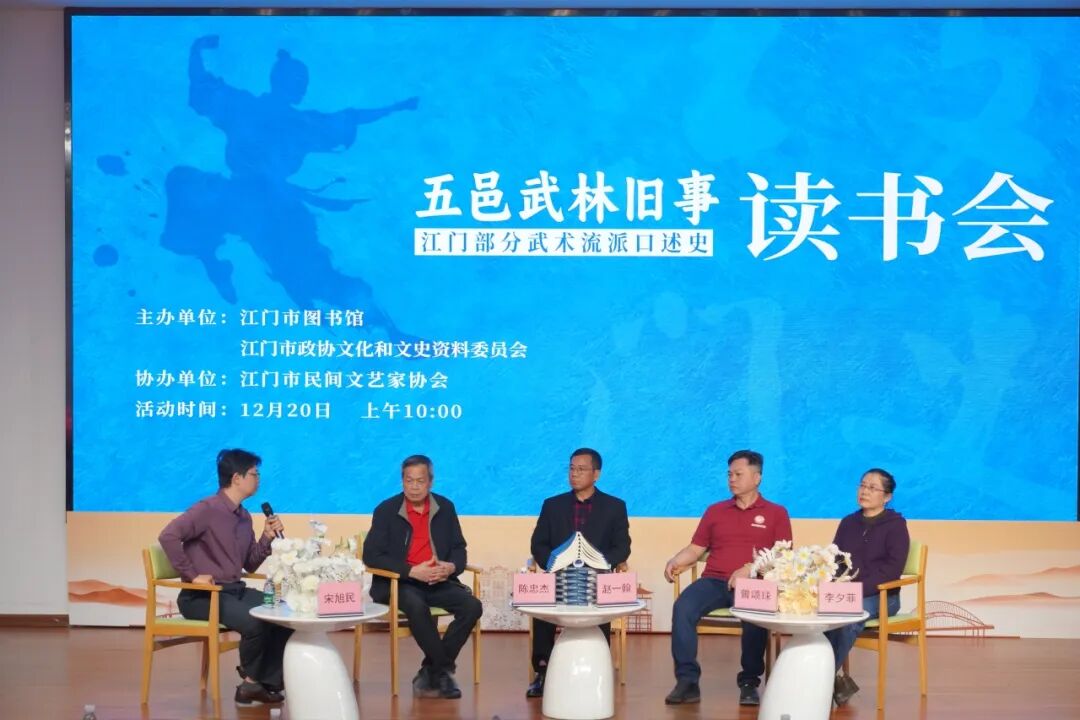12月20日上午,江门市图书馆南楼报告厅内武韵流淌、书香洋溢、群英荟萃。由江门市图书馆、江门市政协文化和文史资料委员会主办,江门市民间文艺家协会协办的《五邑武林旧事:江门部分武术流派口述史》读书会在此圆满举行。这场兼具文化底蕴与武学风采的盛会,吸引了武术传承人、非遗研究专家学者及社会各界读者近百人齐聚一堂,共话侨乡武术传承与发展。