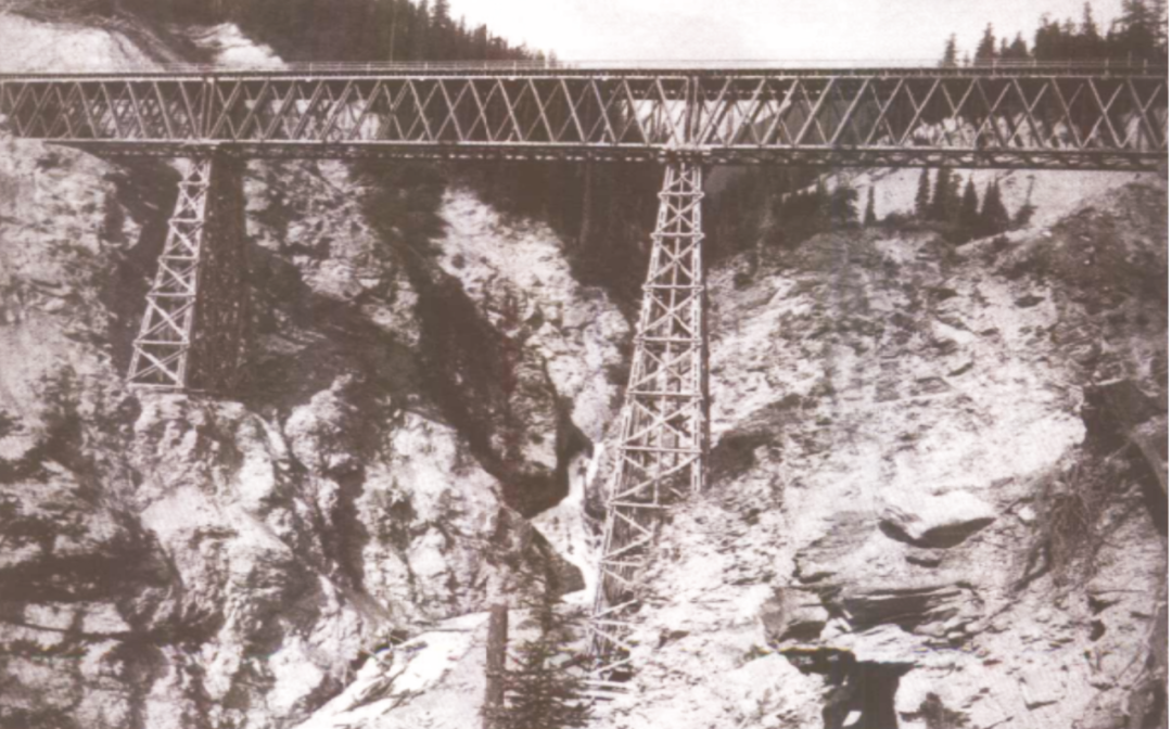 屹立在峡谷岩石中的太平洋铁路桥