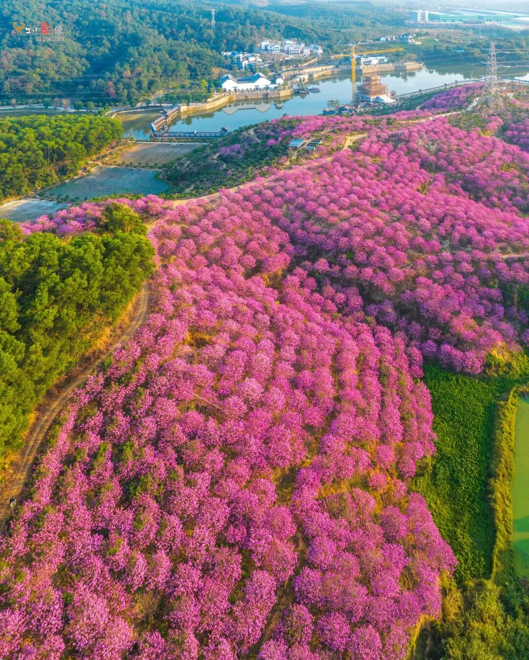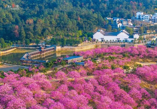 成片的花树汇聚成海,