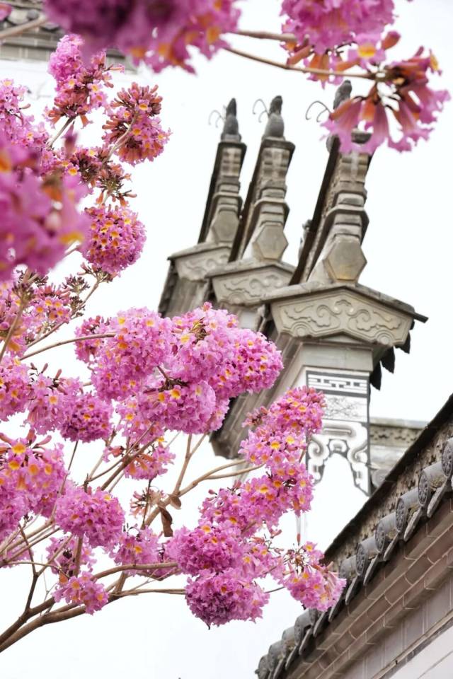 紫花风铃木已相继盛放,
