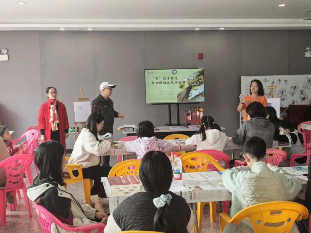 作为承载着中华优秀传统文化的古老技艺,东方绳结以“结”传情,每一款绳结都蕴含着吉祥美好的寓意。活动伊始,李老师结合自身传承经历,向学员们娓娓道来东方绳结的历史渊源与文化内涵,从基础的绳结符号寓意,到不同结式在传统民俗中的应用场景,生动的讲解让大家对这门非遗技艺有了全新认知。“绳结不仅是手工艺品,更是咱们中国人情感的寄托,一双巧手就能把祝福编织进丝丝缕缕里。”李老师的话语让现场学员对接下来的实操体验充满期待。