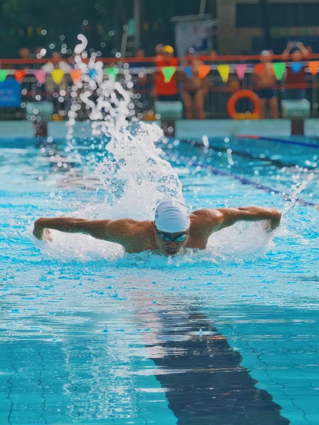随着发令枪响,选手们纵身跃入水中,以矫健身姿劈波斩浪,在泳池间展开激烈角逐。赛场周边,亲友团、观众的呐喊助威声此起彼伏。
