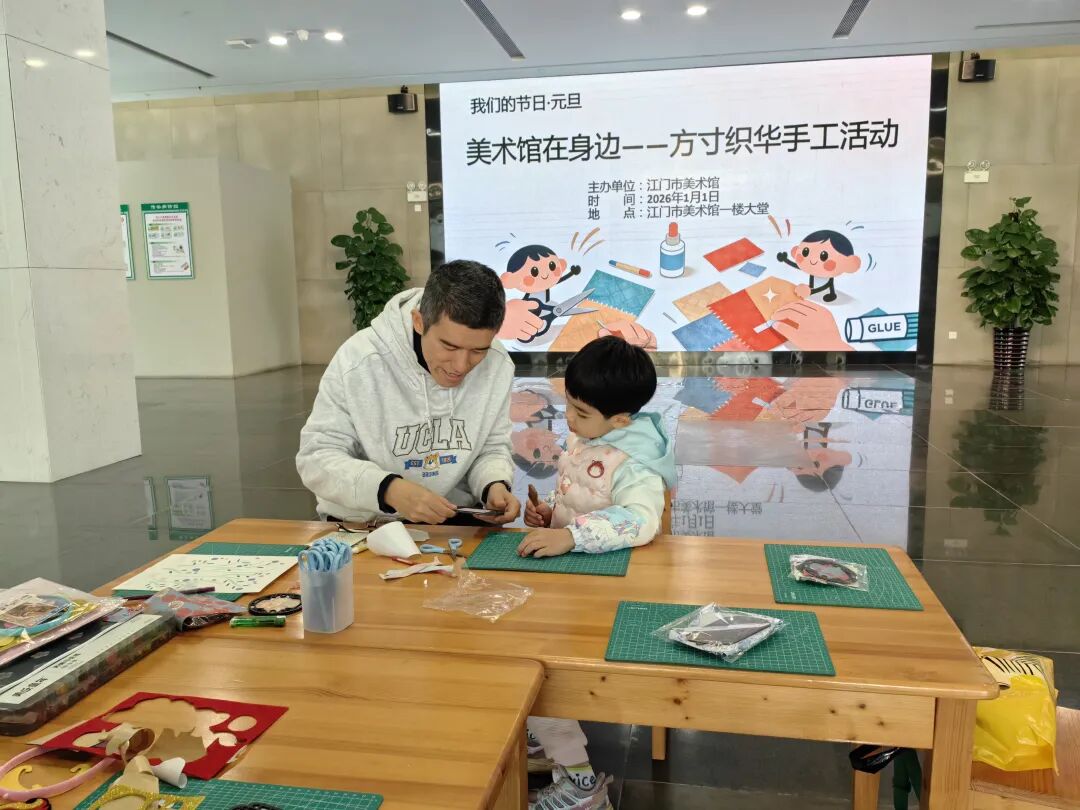 2026年元旦之际,江门市美术馆成功举办“方寸织华”手工体验活动。旨在通过引入传统纹样这一优秀题材,以可触、可感、可参与的生动形式,拓展公共美育的实践场景。