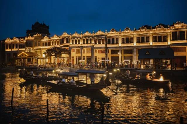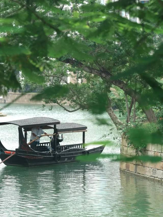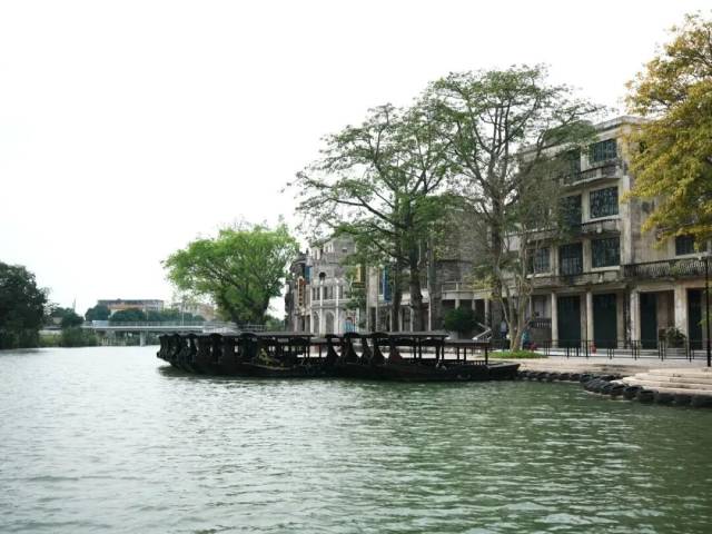 坐上摇橹船,沿着潭江缓缓前行,当年的繁荣商埠仿佛又出现在眼前:摊贩的叫卖声、人群摩肩接踵的脚步声,仿佛要被吸引河中的建筑倒影中。