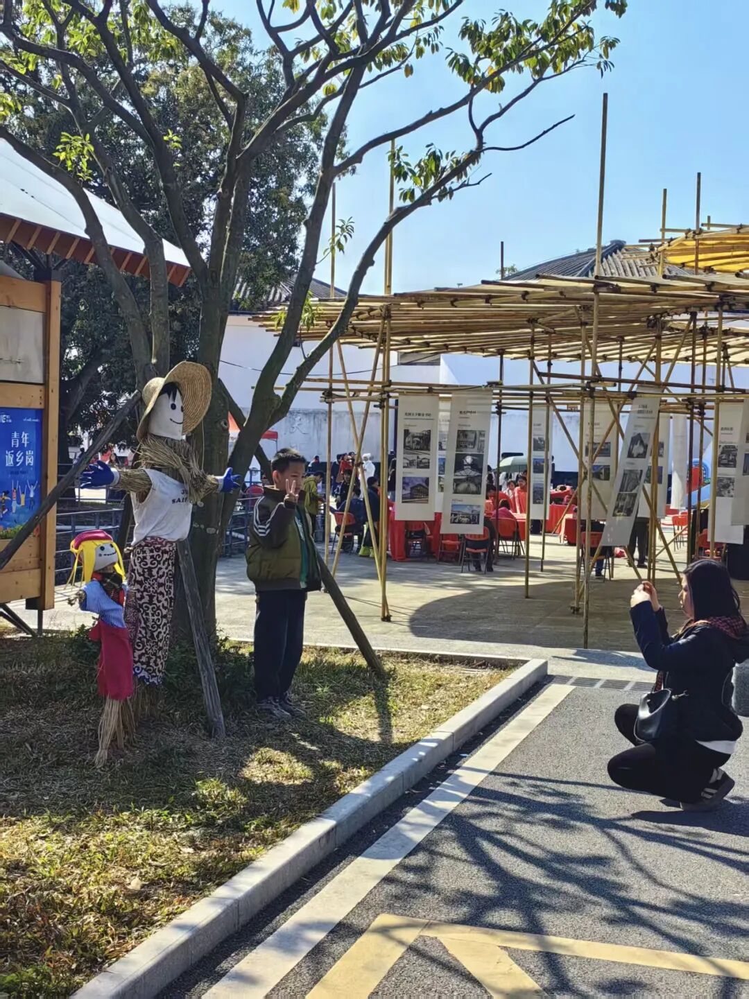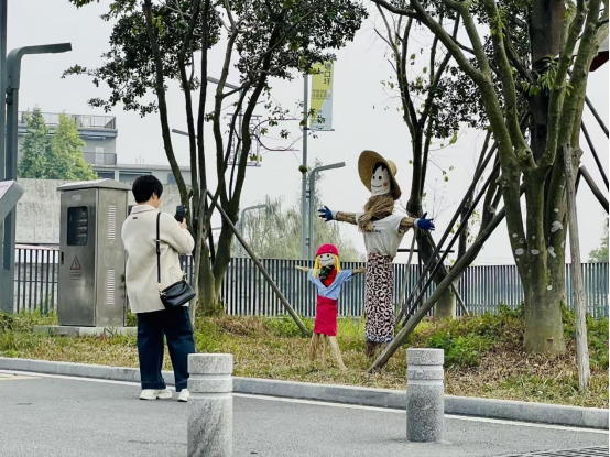 已分批落成的稻草人、稻草祈福装置,