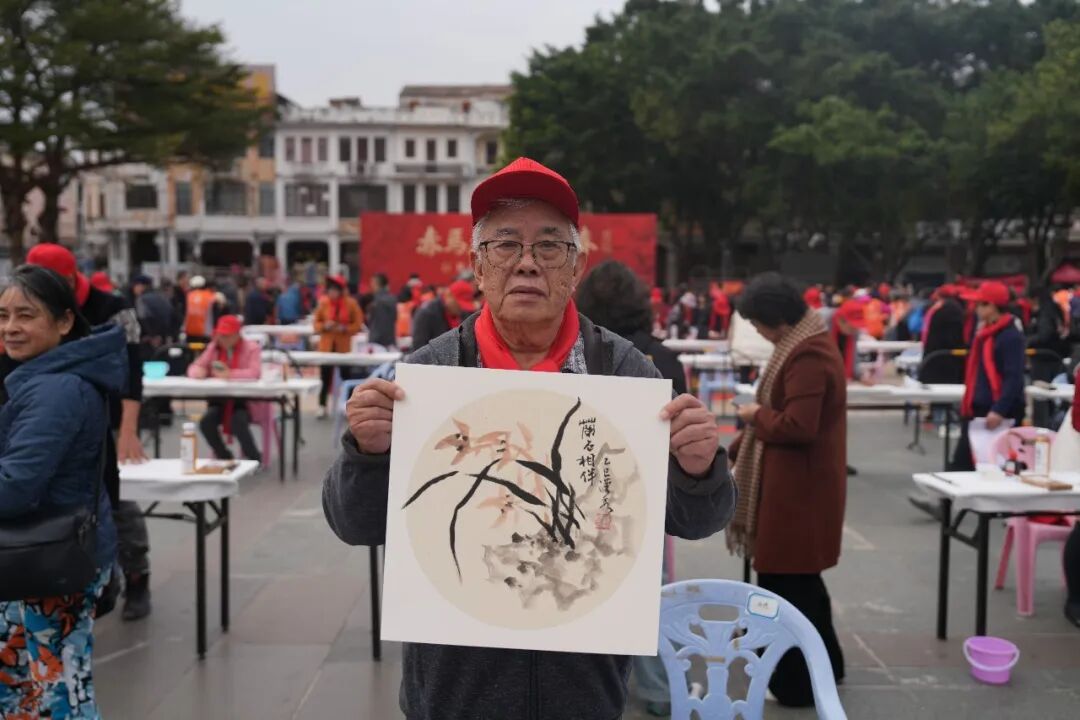 近80多岁江门老艺术家陈汉秀说,这是他在江门见过的规模最大型、参与人数最多、气氛最热烈的新春送福活动。