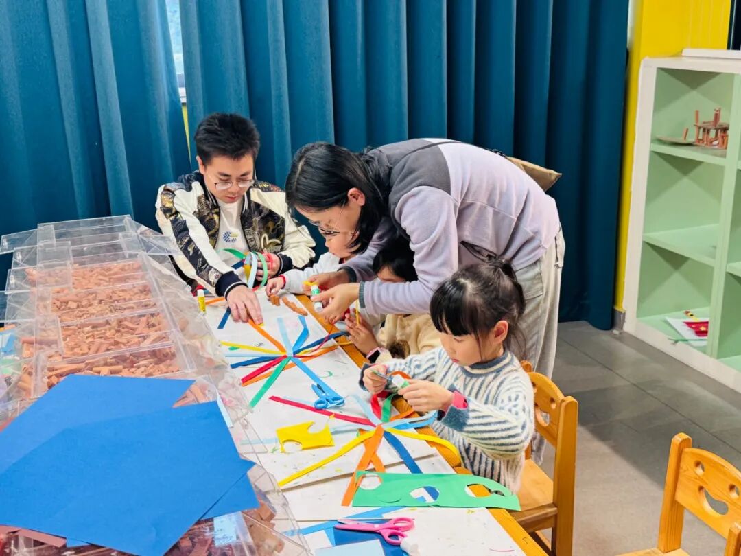 到了制作“旋转小灯笼”环节。孩子们在爸爸妈妈的协助下,彩色卡纸经过剪裁、折叠、粘贴,渐渐有了灯笼的模样。他们发挥创意,装上小木棍和红绳。不一会儿,一盏盏独一无二、色彩缤纷的旋转小灯笼就诞生了!孩子们提着自己亲手制作的小灯笼,脸上洋溢着自豪与喜悦,仿佛已经提起了对新一年最明亮美好的期待。