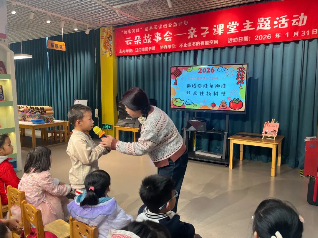 冬日渐暖,书香不辍。一月,江门市图书馆“云朵故事会”如期赴约,用一段段温暖的故事,为读者们驱散寒意、填充欢喜。故事会轻松有序、暖意满满,兼顾不同年龄段读者的喜好,用多样的形式解锁阅读的乐趣,收获了不少读者的喜爱,下面就和我们一起,回顾这一场场温暖的书香之约吧。