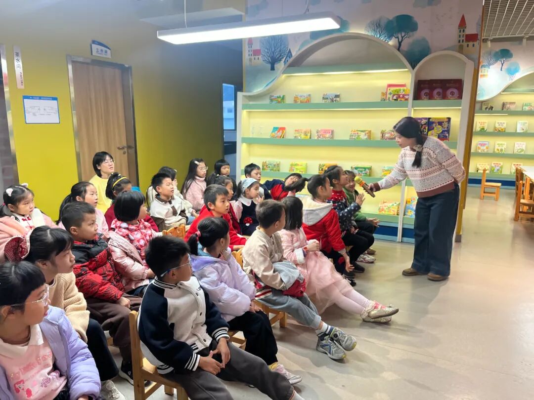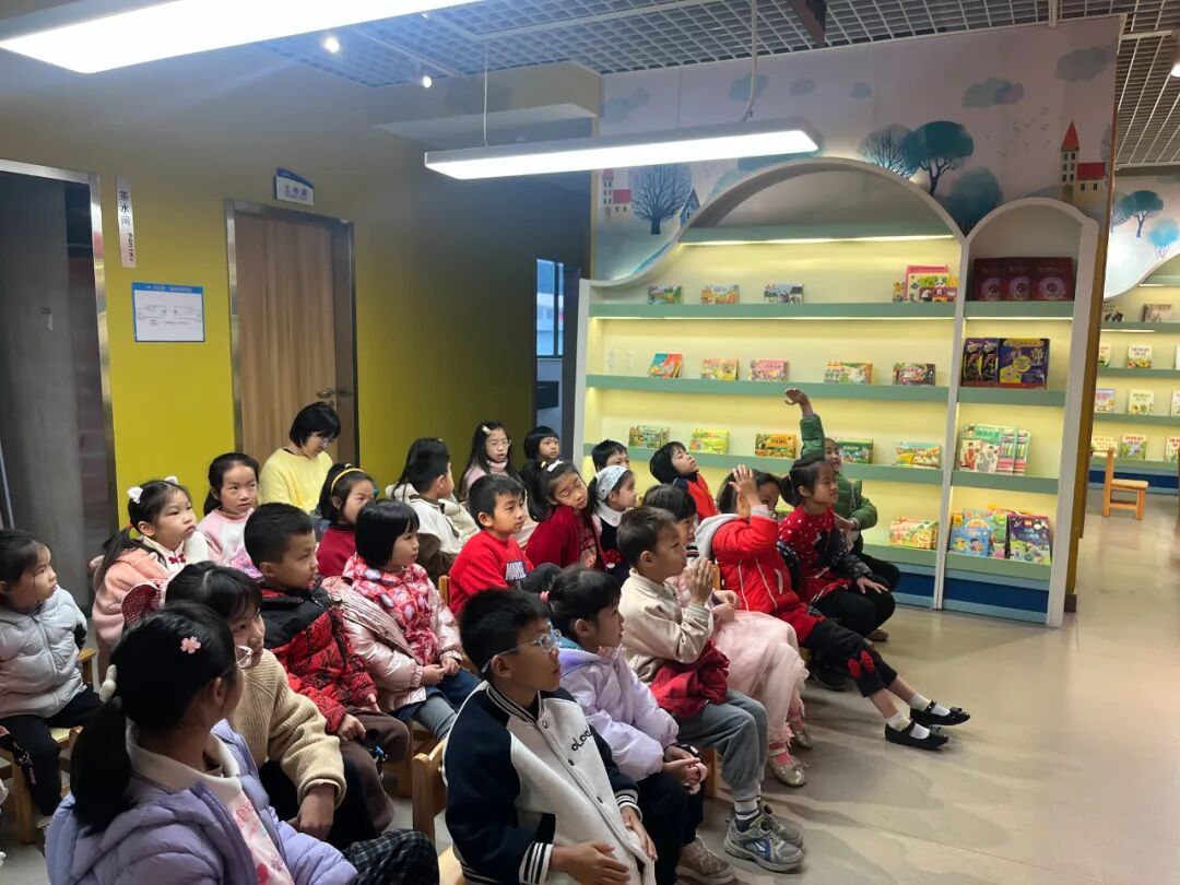 讲述过程中,文化志愿者老师巧妙穿插启发性提问,结合绘本中细腻可爱的画面细节,引导孩子们仔细观察、积极思考,孩子们踊跃举手、大胆发言。文化志愿者老师还通过形象的手势模仿西西编织的动作,还原绘本中的温馨场景,让孩子们在沉浸于故事的同时,直观感受坚持与创新的力量,体会分享带来的快乐,更在心中种下了热爱传统文化的种子。