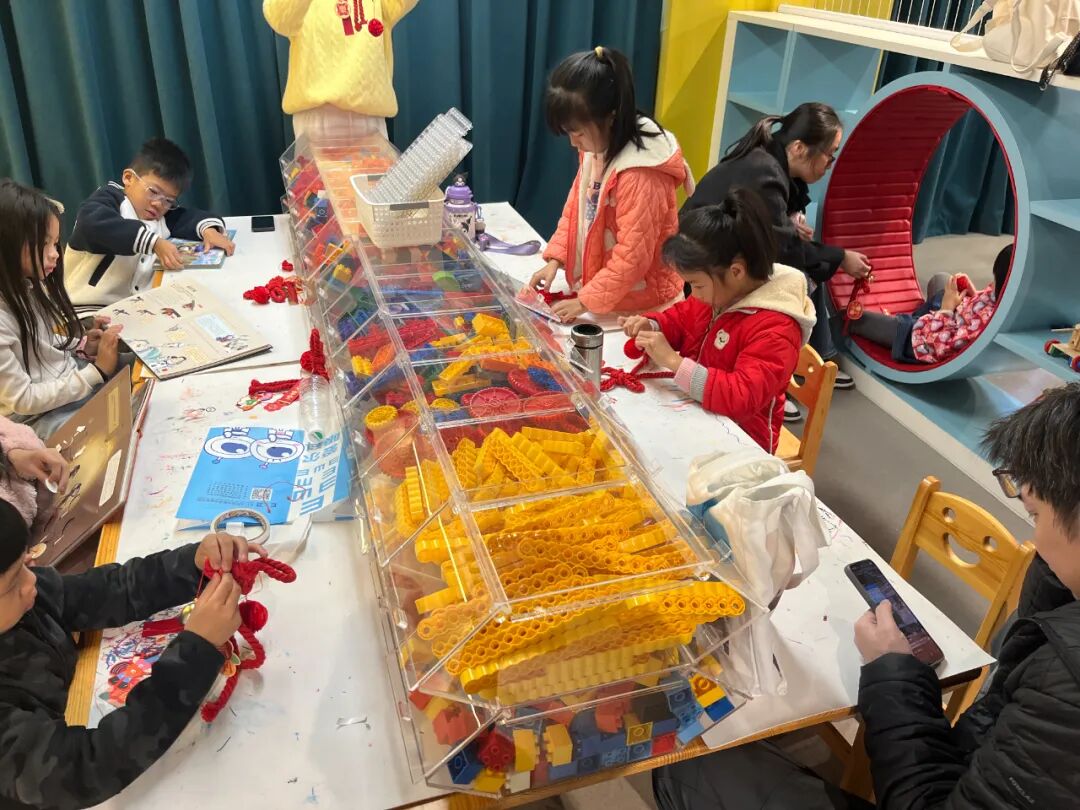 绘本讲读结束后,创意延伸手工环节“巧手编福,点亮年味”将活动推向高潮。结合绘本中西西编织窗花、中国结的情节,文化志愿者老师引导亲子合作,共同制作属于自己的新年饰品——编简易中国结,把绘本里的美好创意变成现实。家长与孩子分工协作,默契配合编织彩绳,打造小巧精致的中国结;还有的发挥创意,在饰品上增添可爱的装饰,用小手传递对新年的美好期许。