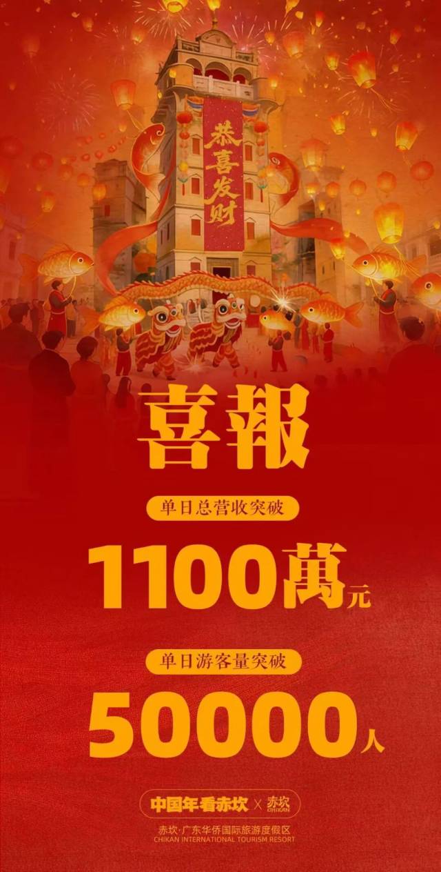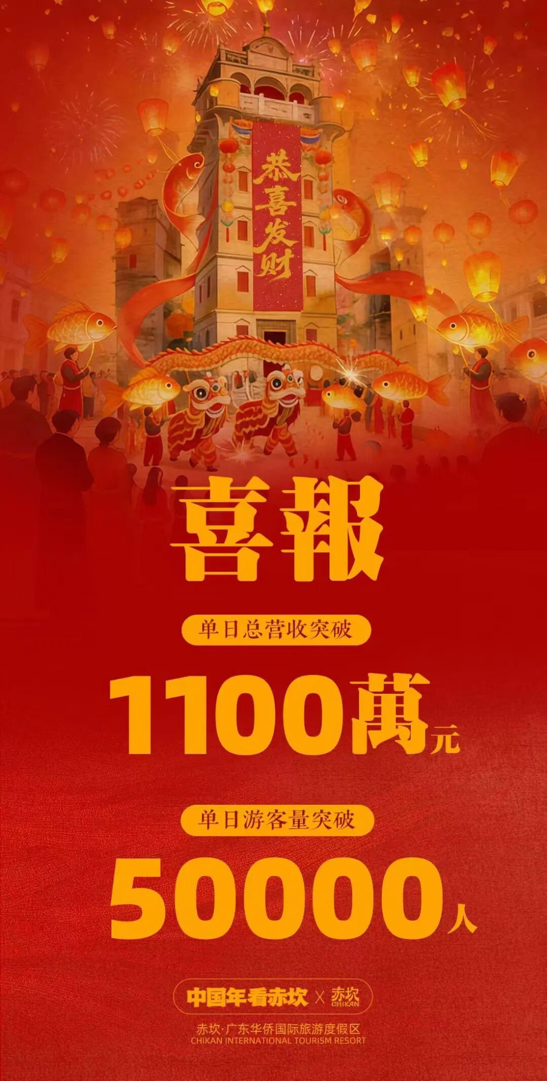 在这喜庆的氛围中,赤坎华侨古镇不仅成为了各地游客欢度新春的热门目的地,更成为了传承和弘扬华侨文化的重要载体。其中,2月19日接待游客5.32万人次,同比增长12.34%,创开业以来单日接待入园游客最高纪录。