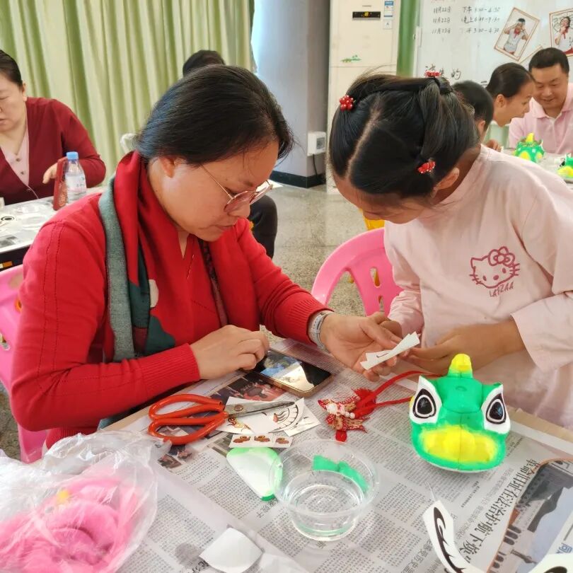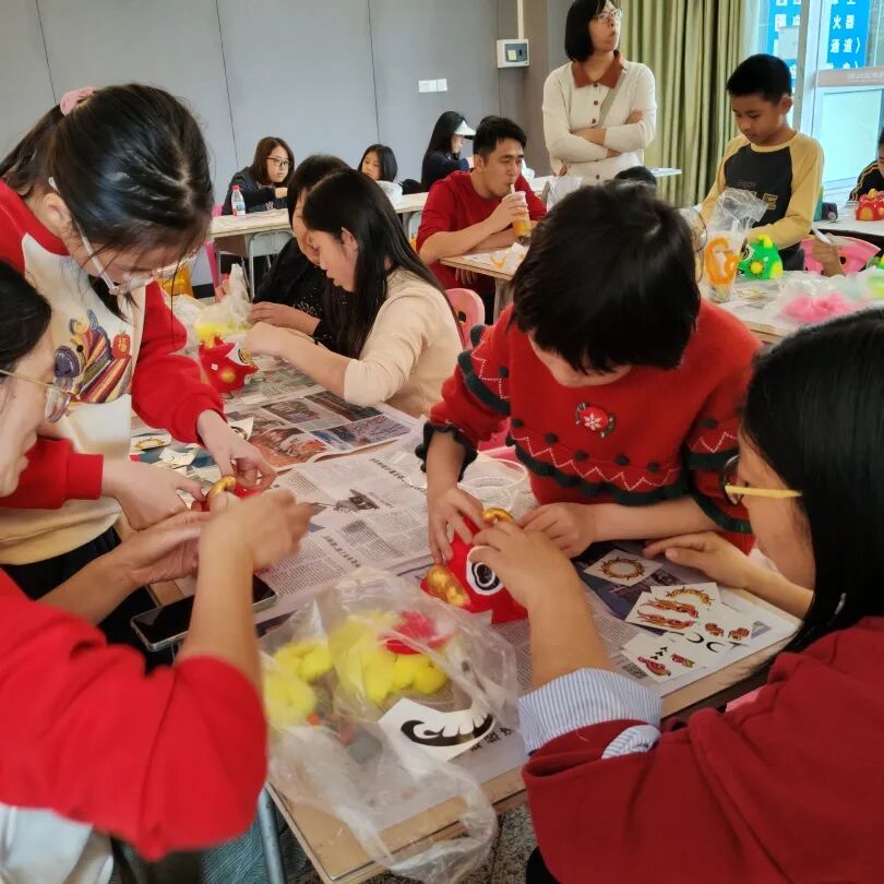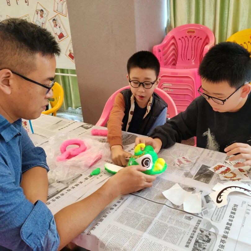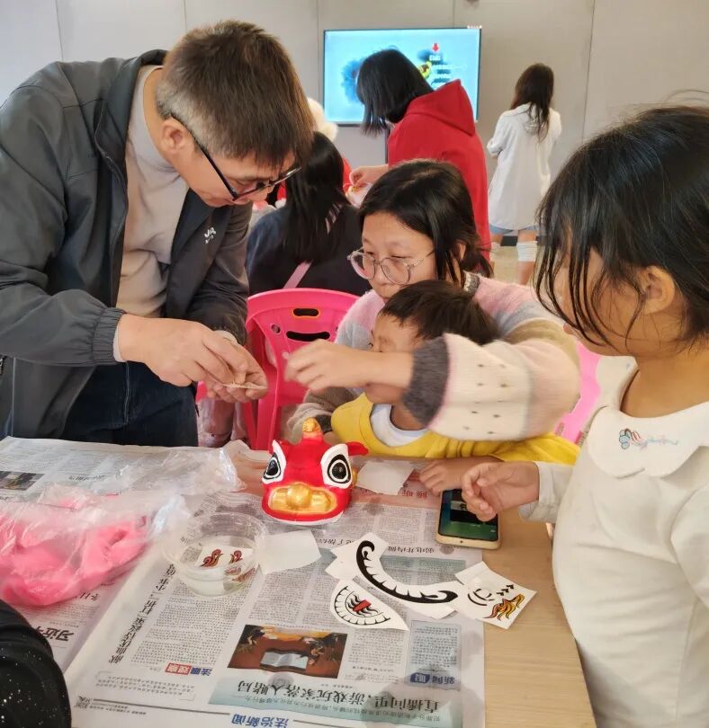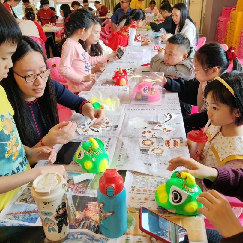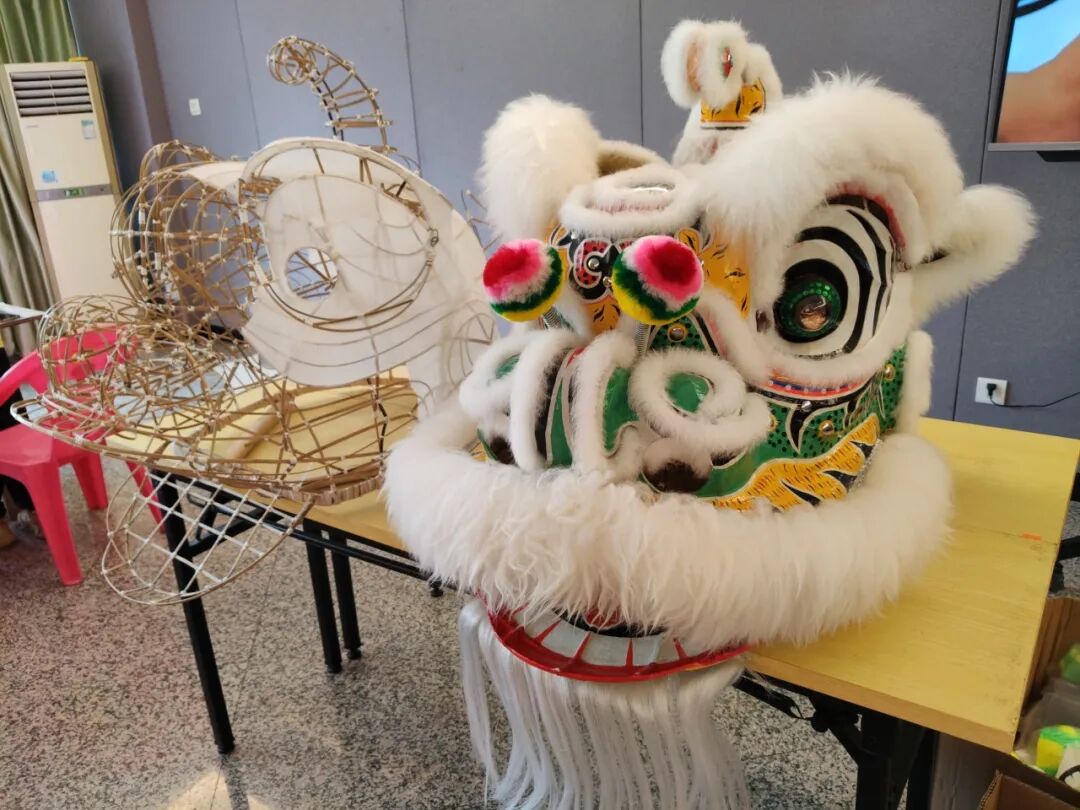 活动特别邀请到鹤山狮头制作技艺市级非遗代表性传承人冯胜强老师亲临现场授课,面对面为学员讲解岭南特色的舞狮习俗、对比鹤装狮与佛装狮的区别、演示鹤山狮艺的舞动特色,让学员感受到狮艺中蕴含的奋发向上、团结进步的精神风貌。然后近距离示范狮头制作的技艺技巧,手把手指导学员制作迷你狮头,为每一位学员送上一份吉祥正气的力量,带回家还能驱邪避灾、招财纳福。这也是立足本土,体现中华优秀传统文化蓬勃生命力的最优诠释。