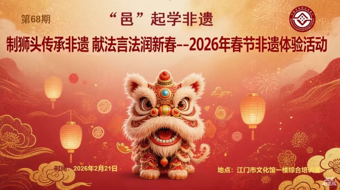 2月21日下午,由江门市文化馆、江门市非物质文化遗产保护中心主办的“邑”起学非遗——“马上纳祥瑞·狮头制作课”活动在江门市文化馆一楼综合培训室成功举办。