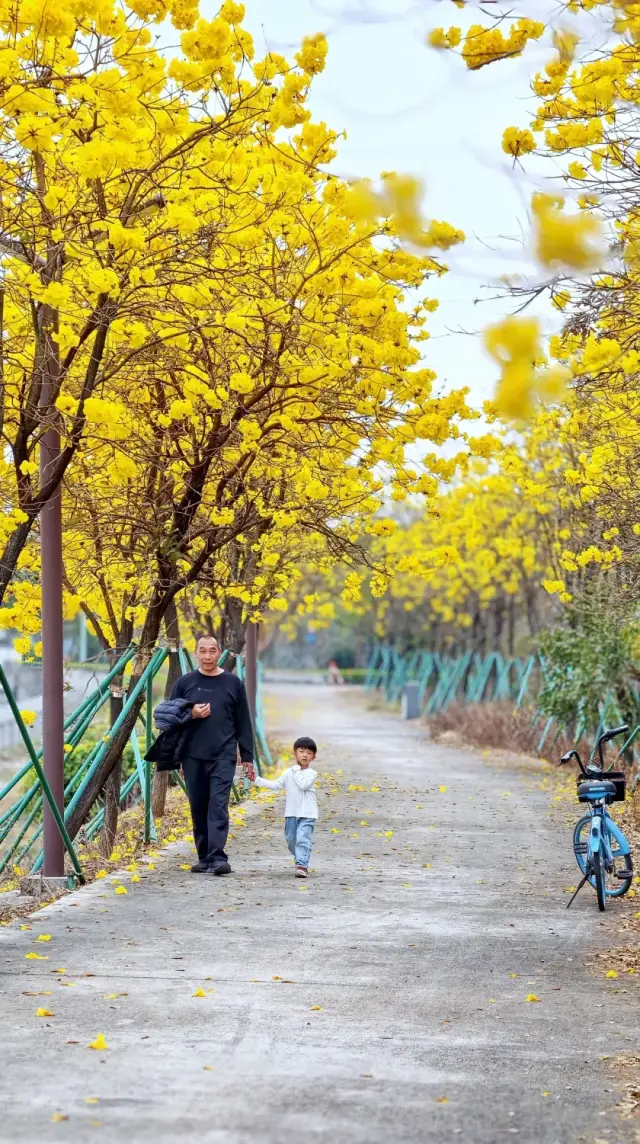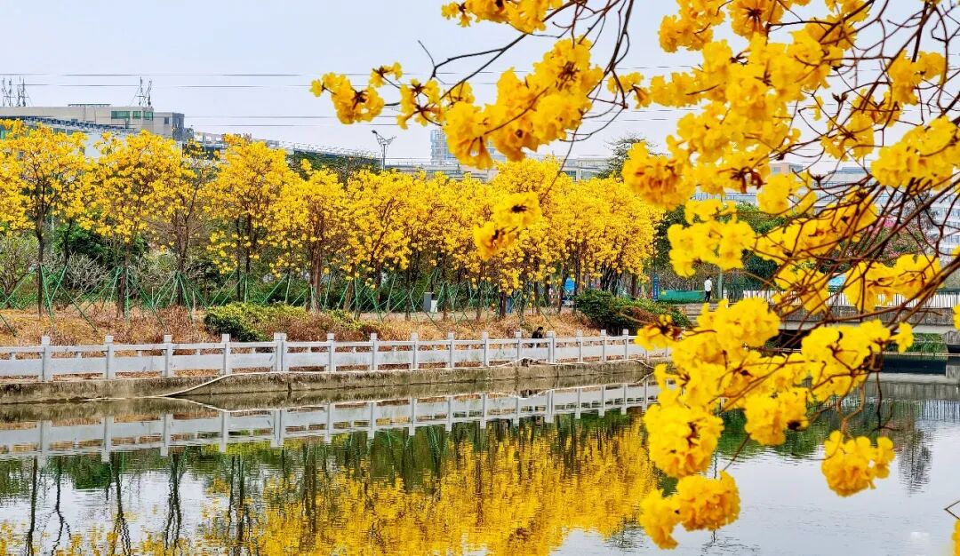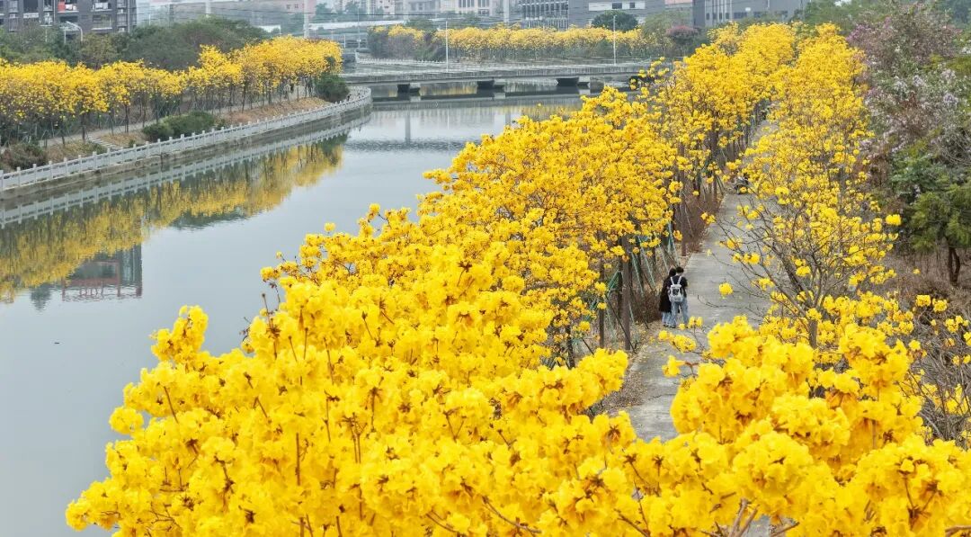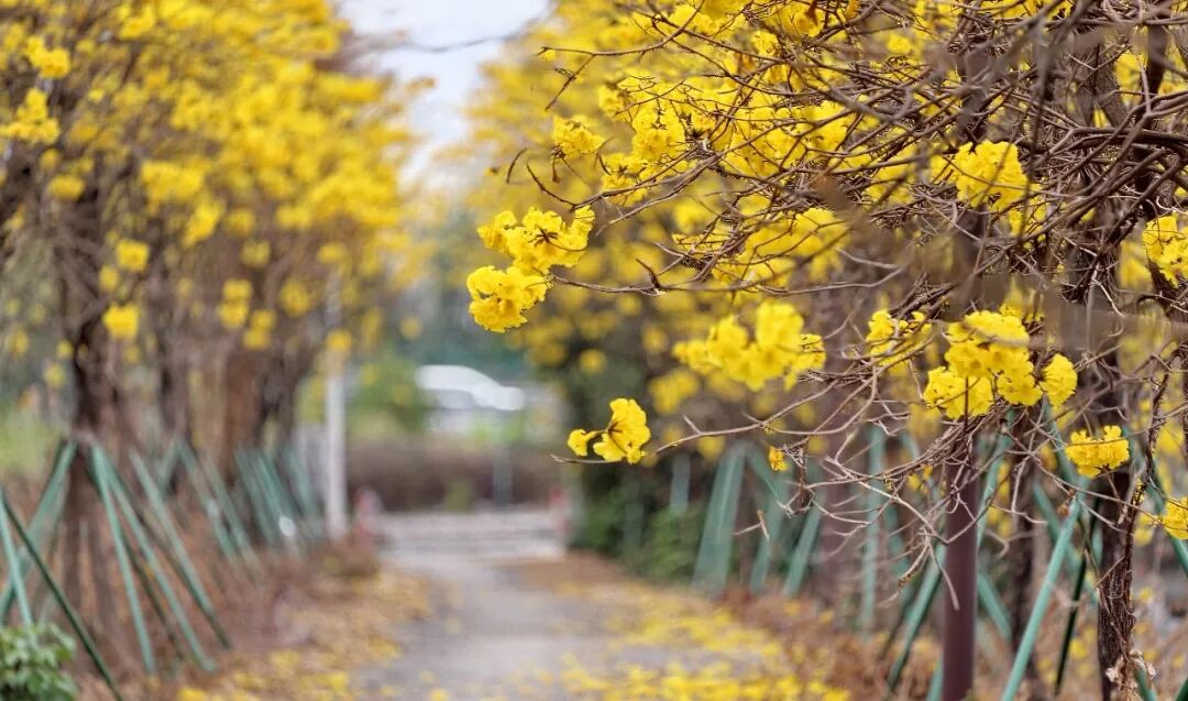 金灿灿的黄花风铃木正开得热烈。
