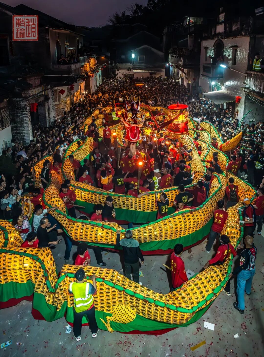 一次打卡两条金龙巡游的场景不可多得!元宵节当天,江门市级非物质文化遗产代表性项目——三江龙乡游龙,在三江镇“龙”重登场,长达150米的金龙在夜色中翻腾起舞。