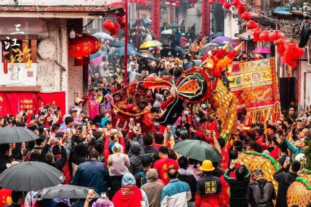 联和村、新江村两条金龙会分别从联和仁和里龙宫、新江恒美坊龙宫出发,走街串巷,热闹非凡。巡游队伍所到之处,鞭炮齐鸣,欢呼声此起彼伏。市民游客们纷纷拿出手机、相机,追随着金龙的身影,记录下这震撼的瞬间。