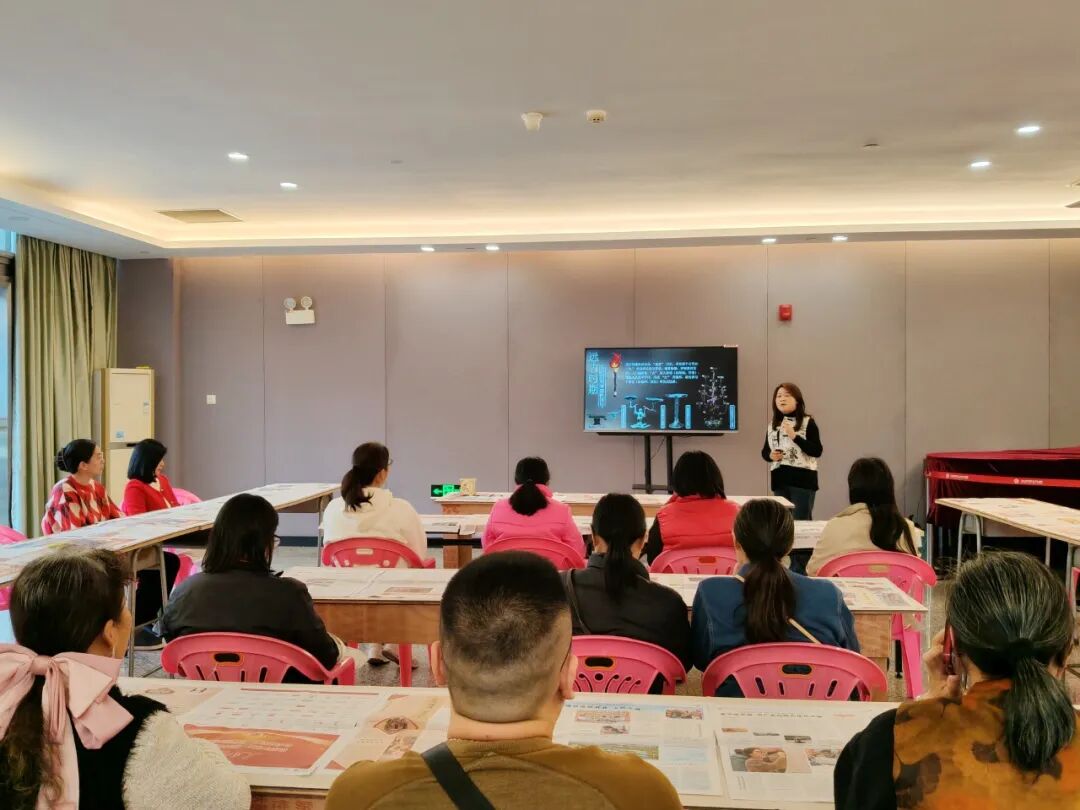 课堂伊始,趣味问答互动瞬间唤醒学员们对元宵灯节的节日共鸣,自然而然引出本次非遗主角——江门东艺宫灯,为整堂课程拉开温馨序幕。“识”环节中,老师带领学员梳理花灯两千余年的演变脉络,明晰宫灯从宫廷到民间的发展轨迹,让大家读懂东艺宫灯随历史沉淀的文化底蕴;“赏”环节里,通过视频解读、现场展示等多样形式,直观呈现东艺宫灯的造型美学与工艺细节,让学员沉浸式感受传统宫灯的独特魅力;“悟”环节中,深挖花灯背后的吉祥寓意与非遗传承故事,传递匠人们坚守传承的初心与精神,让侨乡文化的内涵在讲解中深入人心。