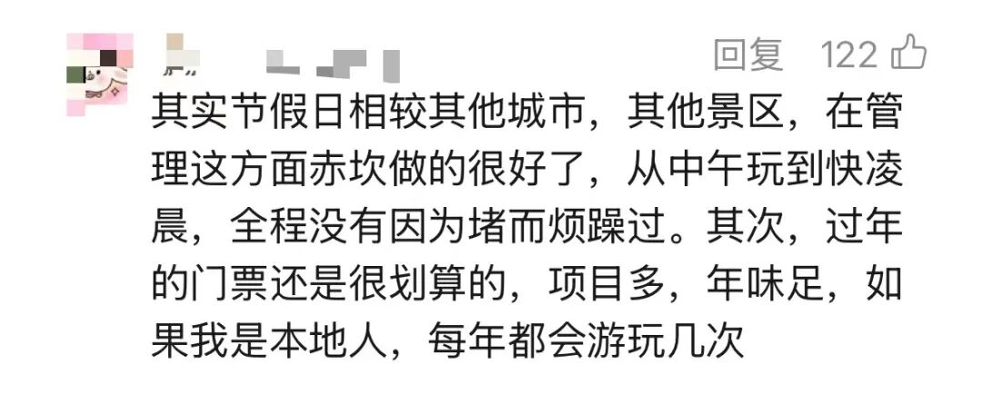 对于客流过大、停车吃饭难题、秩序维护能力一般以及应急式上线的室内表演预约制观看,景区不是没有解释,也因为这个道歉态度,让个中解释有了被听到的可能。赤坎古镇开放运营的区域约1200亩,按所规划设计的标准,可以容纳7.5万人,春节期间人流峰值为5万+,远不是网友感慨的“今天的赤坎简直有1亿人”。
