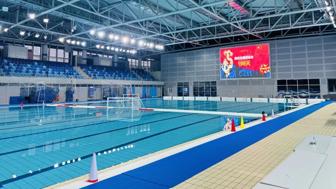 江门体育中心配备专业水球球门、计时计分系统及现场广播,可完全模拟比赛场景,满足了从基础技术到复杂战术演练的全方位需求。同时,泳池水温始终精准恒定在符合国际比赛标准的26℃-28℃区间,确保运动员在长时间高强度训练中始终保持最佳机体状态与运动表现。
