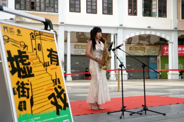 10月19日下午,由江门市文化馆精心策划的“墟街有戏”,以一曲曲悠扬的萨克斯独奏,为秋日的长堤历史文化街区增添了浓郁的浪漫气息。中西融合的音乐盛宴,让市民游客过足了耳瘾,畅享一场难忘的三点三精彩之旅。
