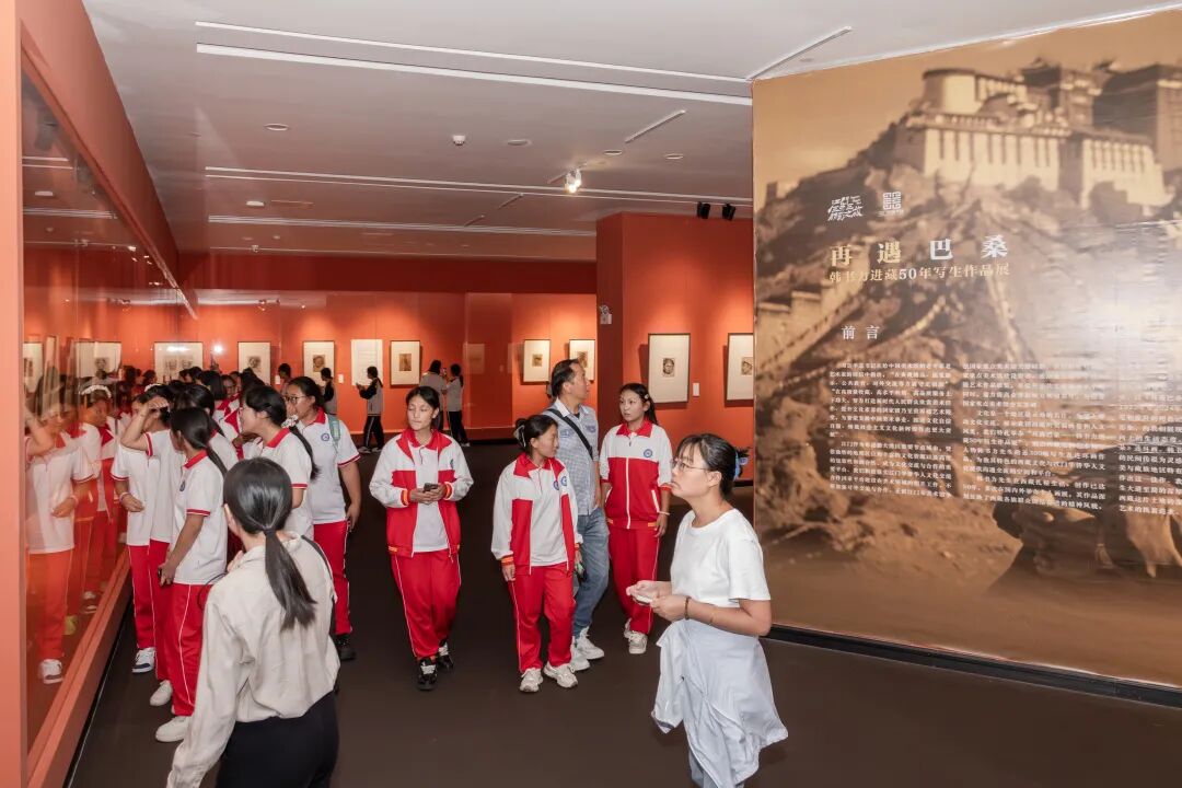 为深入培育和践行社会主义核心价值观,推动文化公共服务实现高质量发展,江门市美术馆与广东江门幼儿师范高等专科学校于10月30日联合举办了一场馆校共建公教活动。活动以“再遇巴桑——韩书力进藏五十年写生作品展”为思考原点,旨在提供展览互动平台,发挥其作为民族文化美育载体和促进汉藏文化交流渠道的作用,引领首次远离藏区、来到江门求学的青少年学生,通过绘画这一艺术形式,了解记录生活、表达心声,感悟汉藏民族文化交融的独特魅力,深化对中华民族多元文化的理解和认同,为传承和弘扬民族文化注入更多青春活力。本次活动共有来自该校西藏部的50余名师生参与。