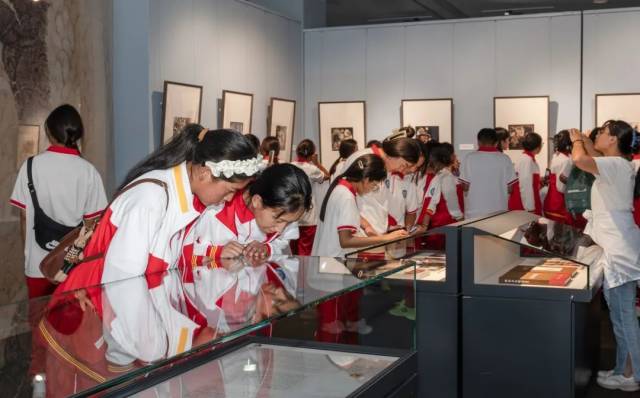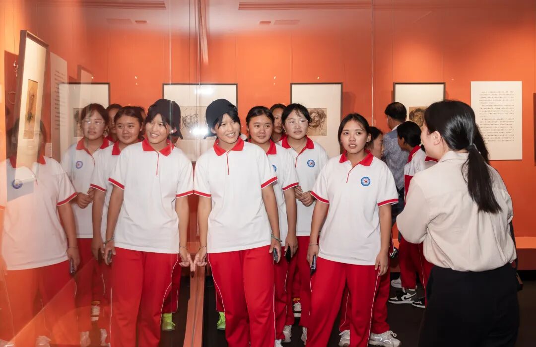 在讲解员的悉心引导下,师生们细致入微地欣赏了艺术家的作品,深入了解了作品的创作技法、经验以及艺术家在不同历史时期的创作心态和画面语境。当那些熟悉的人物形象、传说故事以一种相对陌生的形式展现在学生面前时,他们展现出强烈的好奇心和求知欲,全身心地投入到活动中。