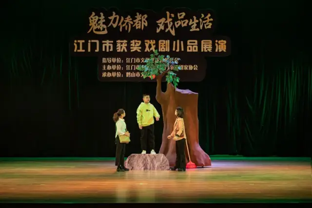 展演活动当晚,还举办了“演绎时代好戏,讲述侨乡故事——庆祝中华人民共和国成立75周年江门市微短剧、小戏小品创作大赛”颁奖仪式。本次大赛由江门市文学艺术界联合会主办,江门市戏剧家协会承办,通过赛事发掘了更多戏剧创作、表演人才,营造了浓厚的戏剧文化氛围,进一步推动江门文化艺术的繁荣和发展。