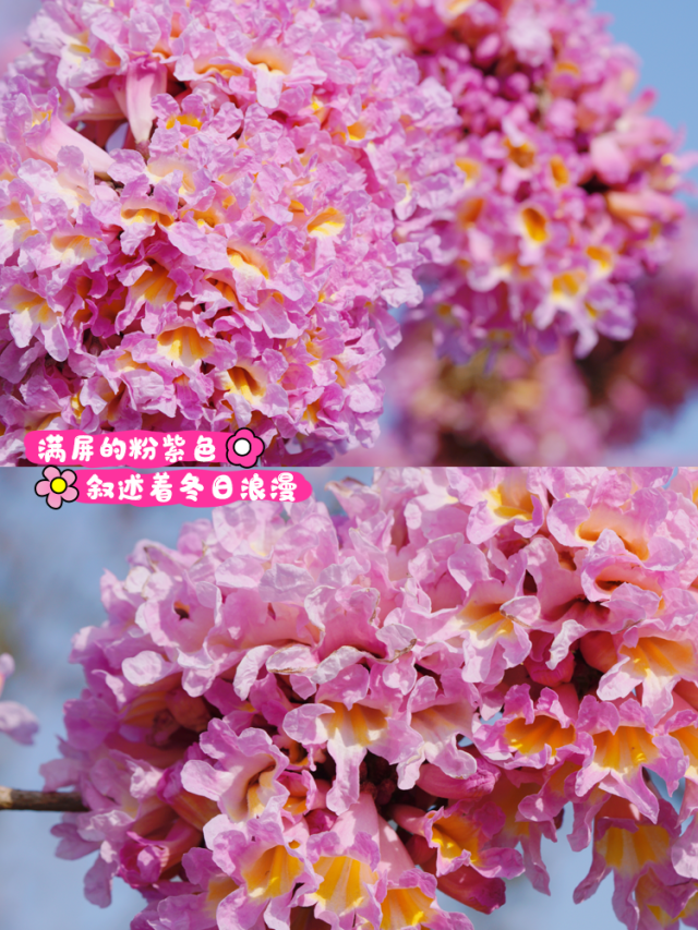 今天我请客请大家赏浪漫紫色花海生活在江门这座城市,一年四季都有惊喜——这不,江门又有新的花海开放啦!那就是——紫花风铃木。近日,江门站前的紫花风铃木盛开,静静驻足观赏,沉浸于梦幻色彩中,心情瞬间被治愈。抬头一望,你就可以看见紫粉的花球挂在枝头,与蔚蓝的天空交相辉映,令人陶醉。再咔嚓按下快门,就可以拍出一张美美的照片了。花海免费参观,趁着阳光灿烂,快换上美美的服装,拍出大片啦。