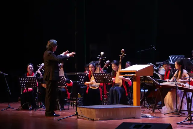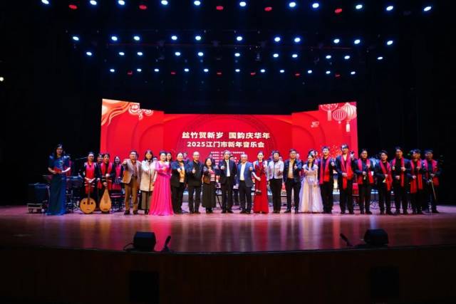 12月28日晚,江门市文化馆二楼文化剧场内灯火璀璨、乐声悠扬,由江门市文化广电旅游体育局主办、江门市文化馆承办、广州现代民族乐团演出的“丝竹贺新岁 国韵庆华年”2025江门市新年音乐会在喜庆祥和的氛围中拉开帷幕,500余名观众共同体验了这场江门三点三精彩之旅。演出现场座无虚席,气氛火爆。