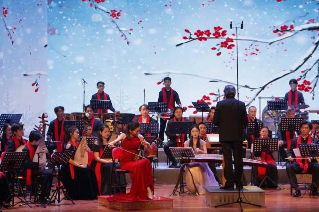 演出中,既有《唐乐礼记•秦王破阵》《大唐圣乐·响宴》这样的经典古曲,也有《音画西游•悟空》《“红梅”随想》《花儿为什么这样红》《红高粱·九儿》等影视歌剧主题音乐,让现场观众在熟悉的旋律中深刻感受到了国韵的文化底蕴和缤纷魅力;
