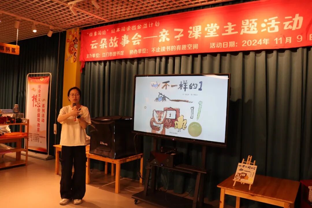 11月9日下午,江门市图书馆的云朵故事会 - 亲子课堂迎来了第 42 期活动,志愿者老师带领家长和孩子们一起走进了绘本《不一样的 1》的奇妙世界,为他们带来了一段难忘的亲子时光。