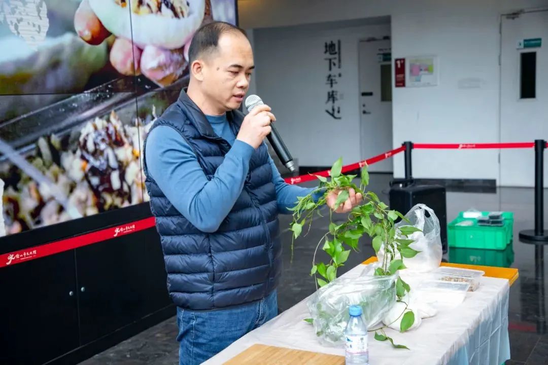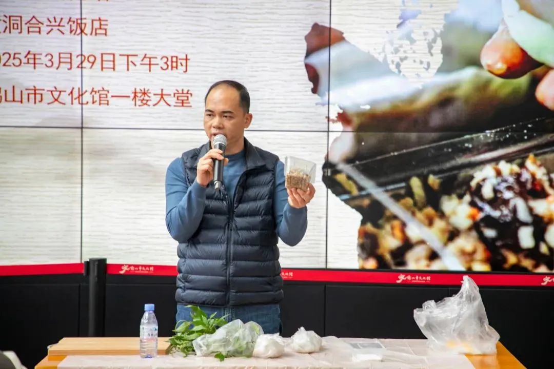 活动邀请了黄洞合兴饭店师傅黄礼权作为分享嘉宾,来为大家详细介绍黄洞米点的历史渊源、主要特征和发展情况等,其中,特别介绍了黄洞米点中鸡屎藤糕的做法和如何分辨鸡屎藤,还准备了鸡屎藤糕让参与者品尝。大家闻香试吃,现场气氛热烈而和谐。