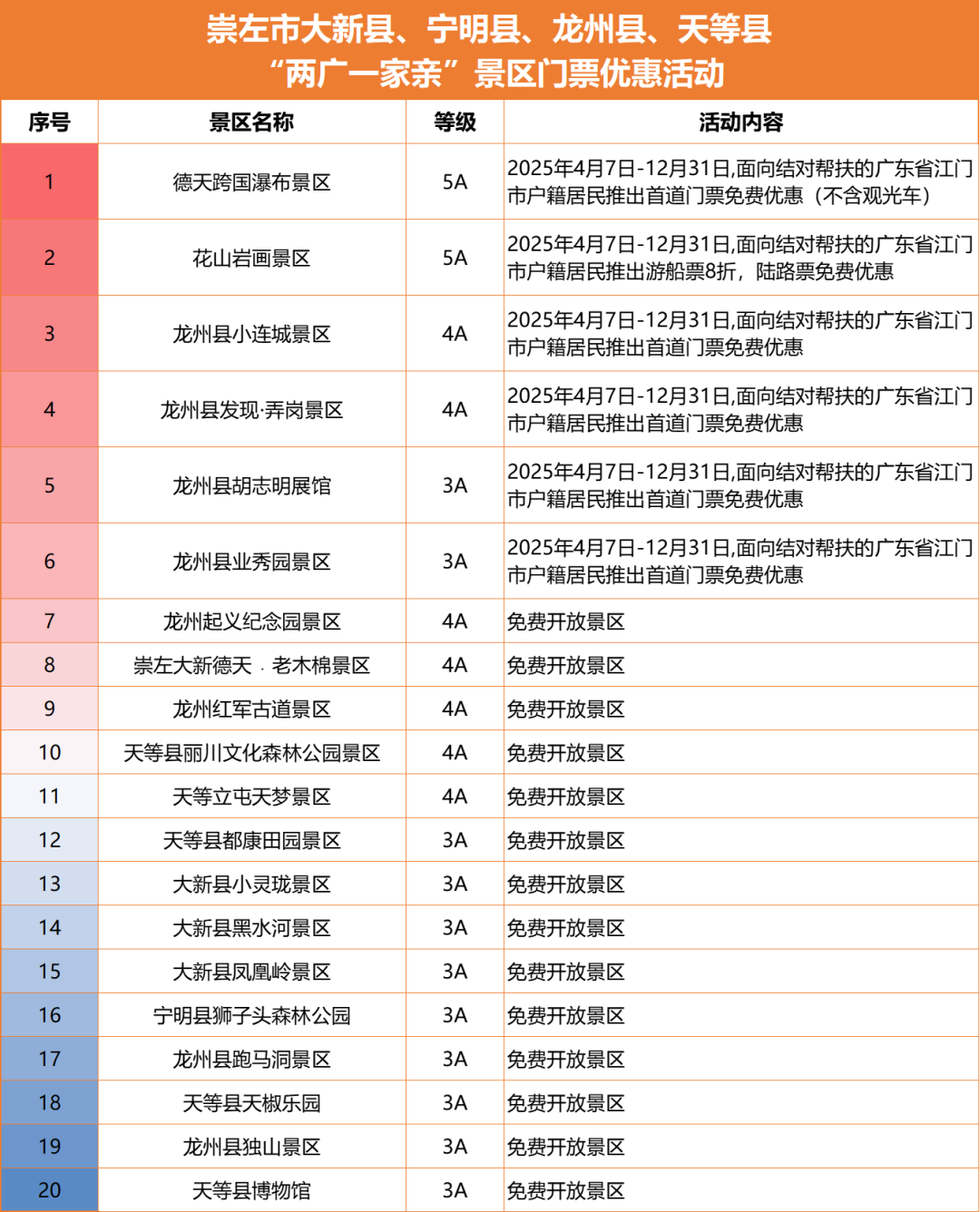 2025年,崇左市大新县、宁明县、龙州县、天等县
