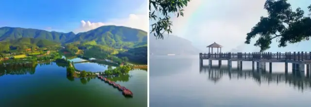 圭峰山国家森林公园,位于江门市新会区,森林覆盖率达98%。山上常年水汽蒸腾,云雾缭绕,形成“云峰烟雨”“东岭晨曦”等自然景观,夹带着高山密林湖泊的清新空气,宛如人间仙境。圭峰以“绿”闻名,“圭峰叠翠”现为新会八景之首。