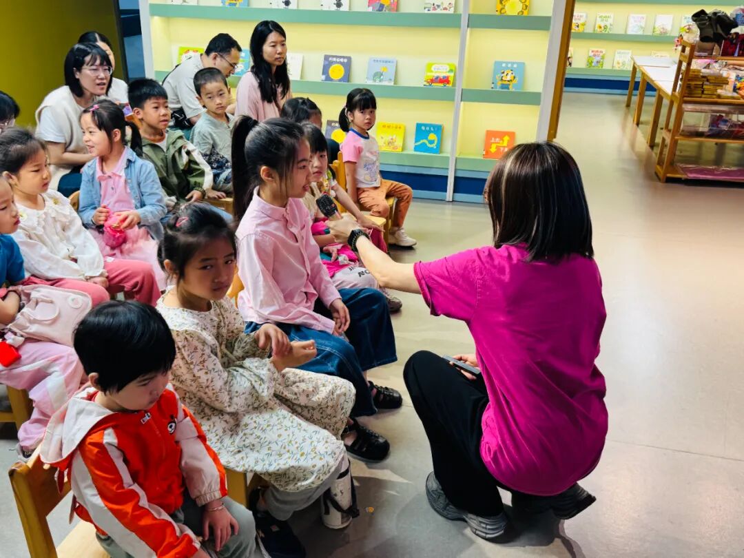 故事讲述完毕,文化志愿者老师引导孩子们思考故事中出现的问题,并邀请他们分享自己的解决办法。小朋友们思维活跃,积极举手发言。有的孩子提议设置安静区域和讨论区域,来解决安静读书的问题;有的则想出制作书籍索引卡片的方法,帮助大家快速找书;还有的提出可以准备一些提神的小物件,应对读书犯困的情况。家长们也参与其中,分享自己在日常生活中培养孩子阅读习惯的经验,现场气氛热烈,大家在交流中对阅读有了更深的理解。