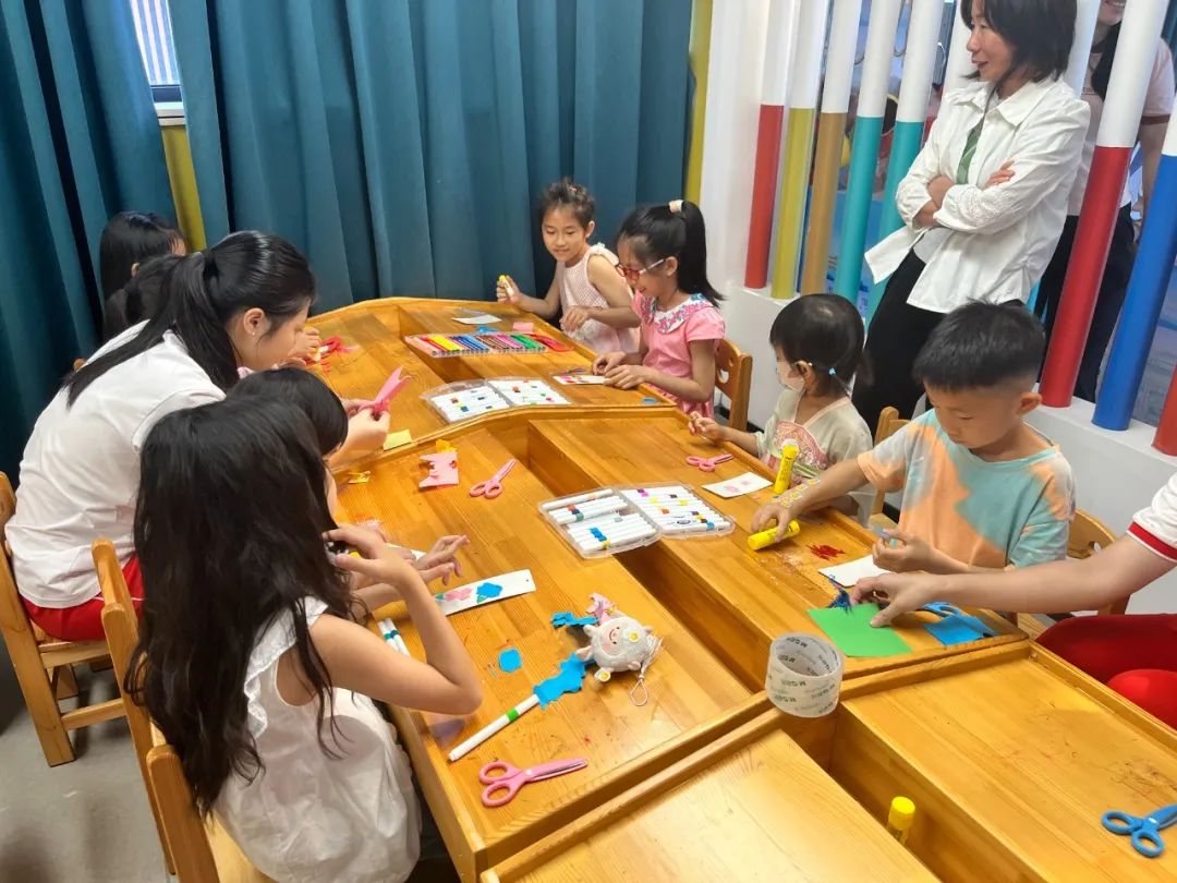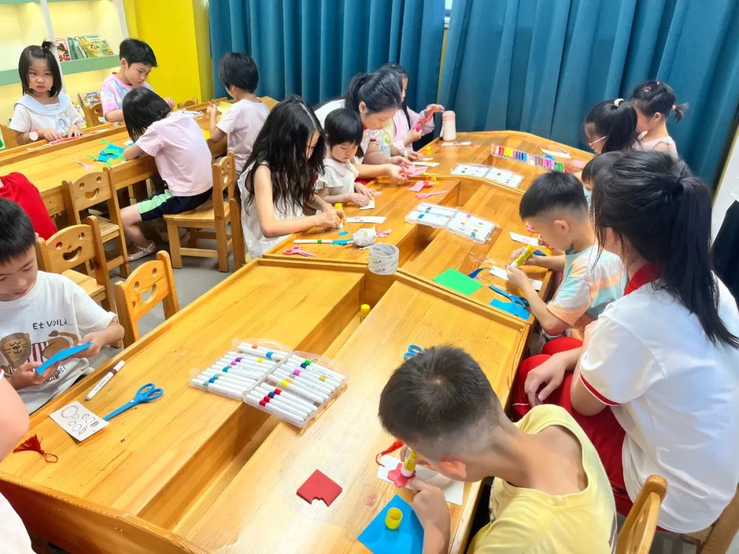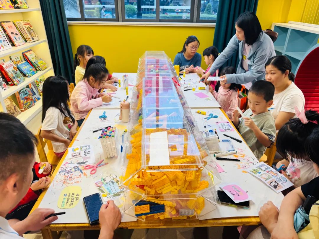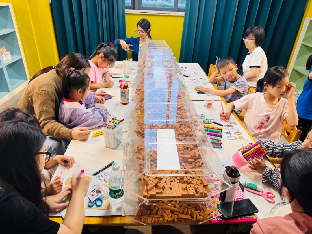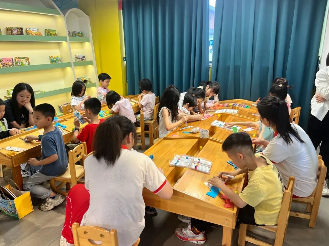 讲读结束后,手工创作环节“小书签”将活动推向又一个高潮。在志愿者老师的指导下,孩子们和家长们齐心协力,充分发挥创意,用彩纸、画笔、丝带等材料制作出独一无二的小书签。有的孩子在书签上画上可爱的小动物,有的描绘出自己心中的图书馆模样,还有的写上激励自己阅读的话语。家长们则在一旁耐心协助,与孩子共同完成这份充满意义的作品。一张张精美的小书签,不仅封存着亲子协作的温馨瞬间,更将化作孩子们遨游书海的 “引航标”,激励他们在阅读中品悟书香、浸润心灵。