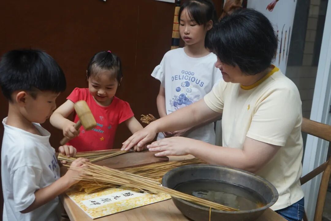 活动伊始,张瑞亨老师向学员介绍了国家级非遗项目白沙茅龙笔制作技艺的历史文化渊源和发展现状,现场示范讲解了18道制笔工序,每位学员都通过剪、锤、捆、缠、刮等手法做出了一支独属于自己的茅龙笔,过程认真投入,收获满满。