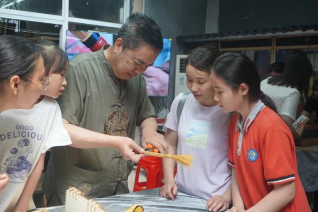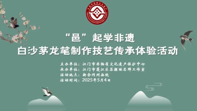 白沙茅龙笔制作技艺于2008年被列入第二批国家级非物质文化遗产名录。为传承江门五邑地区非物质文化遗产,弘扬工匠精神,坚定文化自信,让非遗走进校园,延续活态传承,本着“保护为主、抢救第一、合理利用、传承发展”的方针,5月4日上午,由江门市非物质文化遗产保护中心主办、江门市蓬江区苏颖丽名师工作室承办的“邑”起学非遗——白沙茅龙笔制作技艺传承体验活动在新会冈州画院顺利举办。活动邀请了该非遗项目的国家级代表性传承人张瑞亨老师为学员们教授茅龙笔书画技巧,现场亲子家庭约50人参加了活动。