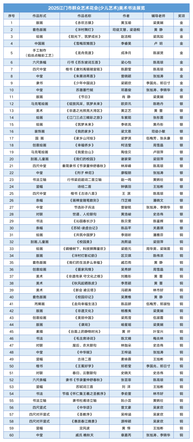 2025江门市群众艺术花会(少儿艺术)美术书法展览获奖名单