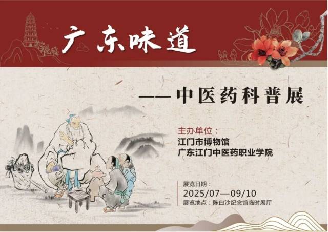 2025年7月——9月10日期间,江门市博物馆联合广东江门中医药职业学院推出的《广东味道——中医药科普展》正在陈白沙纪念馆临时展厅展出中。