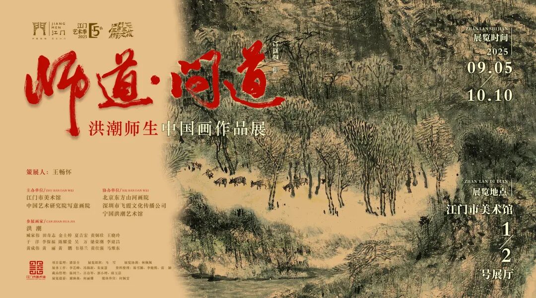 江门市美术馆此次举办洪潮师生中国画作品展,不仅是集中展示了洪潮先生及其弟子近年来创作的山水画佳作,更是对“传道、授业、解惑”的传统师道精神的崇高致敬。观众在欣赏精湛画作的同时,也将深切感受到师道传承与艺术求索在文化发展中所蕴藏的深厚力量。时值教师节来临之际,江门市美术馆也借此展览向所有教师致以节日的诚挚祝福,祝愿老师们教师节快乐。