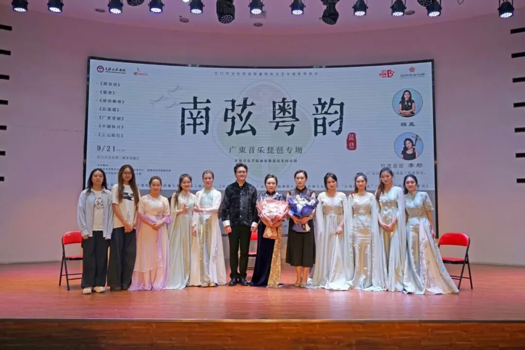 2025年9月21日晚 8 点,江门市文化馆二楼多功能厅内,“南弦粤韵”广东音乐琵琶专场在悠扬琵琶声中缓缓展开。星海音乐学院 “南弦韵” 琵琶室内乐团,以一场岭南味十足的音乐盛宴,让观众沉浸其中。