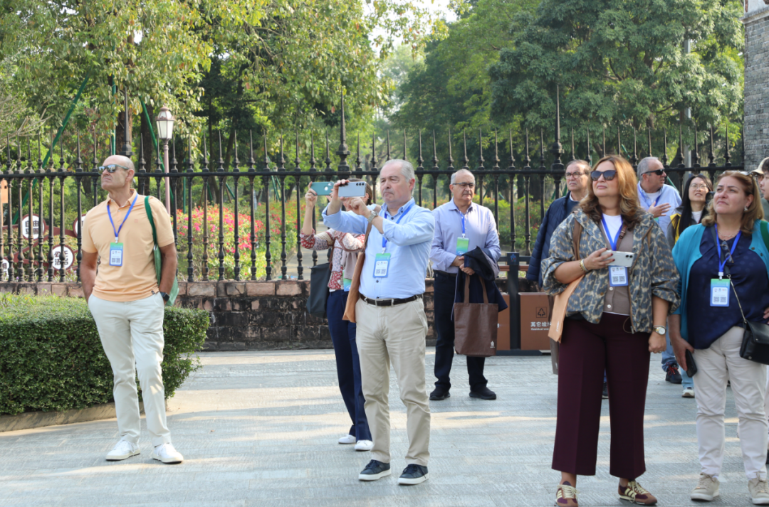 第二天早上,商团还走访了世界文化遗产开平碉楼与村落,参观了有“中国华侨园林一绝”之称的立园,欣赏古典园林韵味与欧美当代流行别墅建筑特色融会贯通的景致。园内绿树成荫,呈现出中西合璧的独特风貌,每一处细节都彰显着华侨对美好生活的憧憬与追求。旅行商们纷纷赞叹,这座园林不仅是中国传统文化的璀璨瑰宝,更是中西文化交流融合的有力见证。 “立园对我们来说很特别,因为这里的建筑融合了欧洲多国的风格,比如英国和葡萄牙的风格。对于葡萄牙人而言,来到这里能发现中西文化的共通之处。”Cláudia Patrícia de Almeida Seabra Moreira说道。