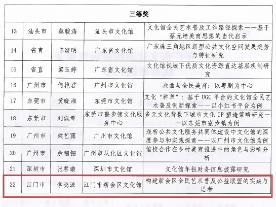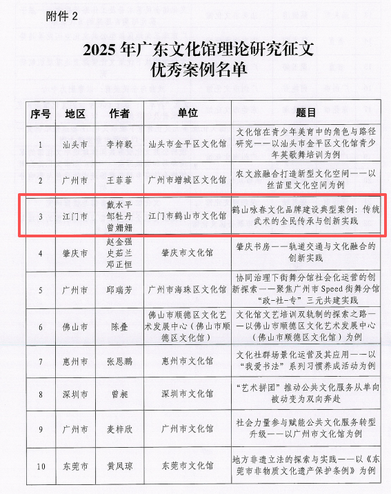 喜讯|江门市3篇研究性论文、1个案例在2025年广东文化馆理论研究征文中获奖!_服务保障信息_江门市文化广电旅游体育局
