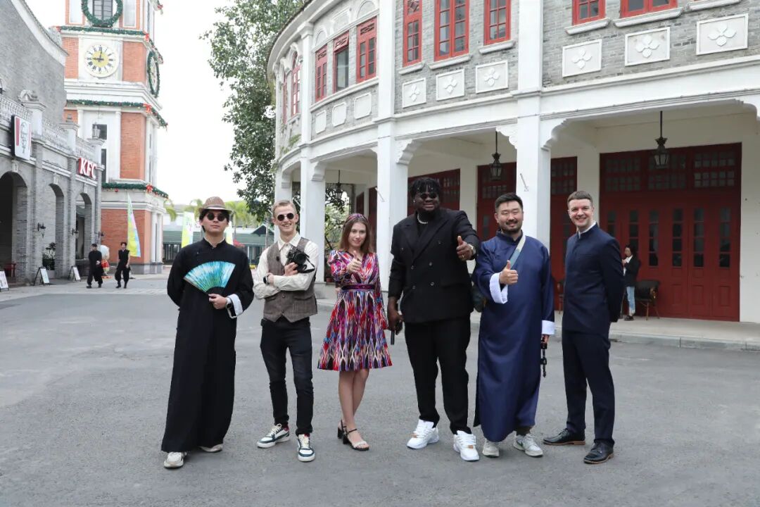 一众视频博主在赤坎华侨古镇采风(左三为卡丽娜)