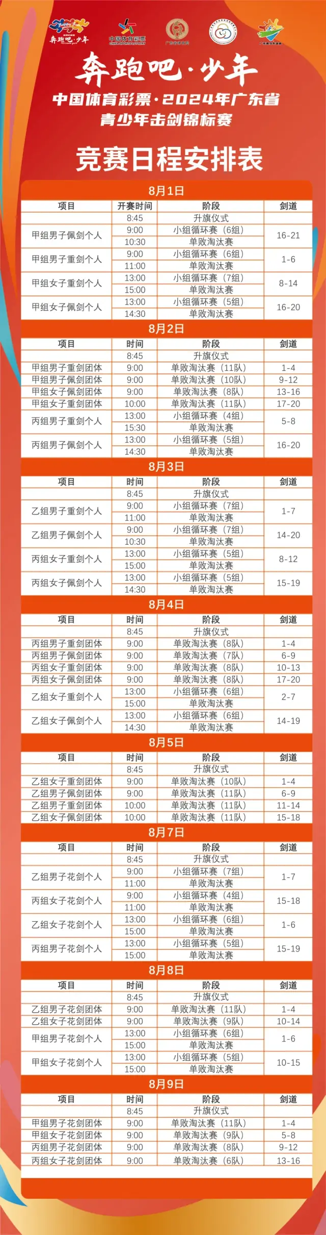 该赛事是由广东省体育局主办,江门市文化广电旅游体育局承办,广东省击剑协会、江门市蓬江区文化广电旅游体育局、江门滨江华体体育会展中心有限公司协办,广东省体育彩票中心支持。8月1日-5日进行第一阶段比赛,赛风赛纪良好、赛事安全有序。第二阶段比赛将于8月7日-9日进行,谁能突出重围夺得桂冠,让我们在接下来的比赛中拭目以待!