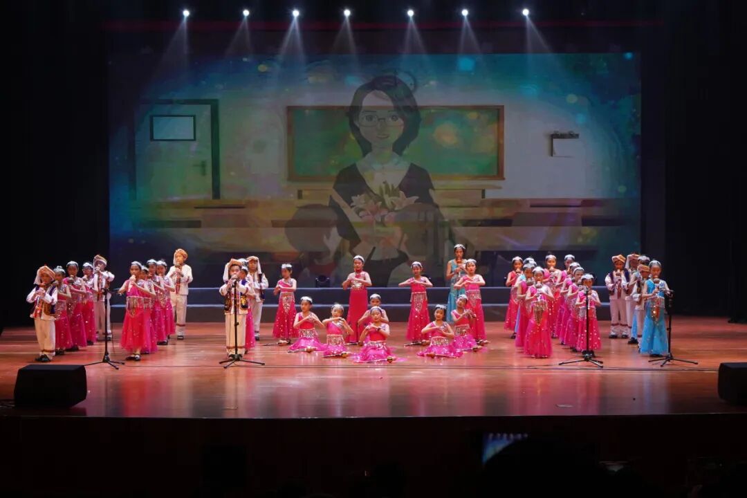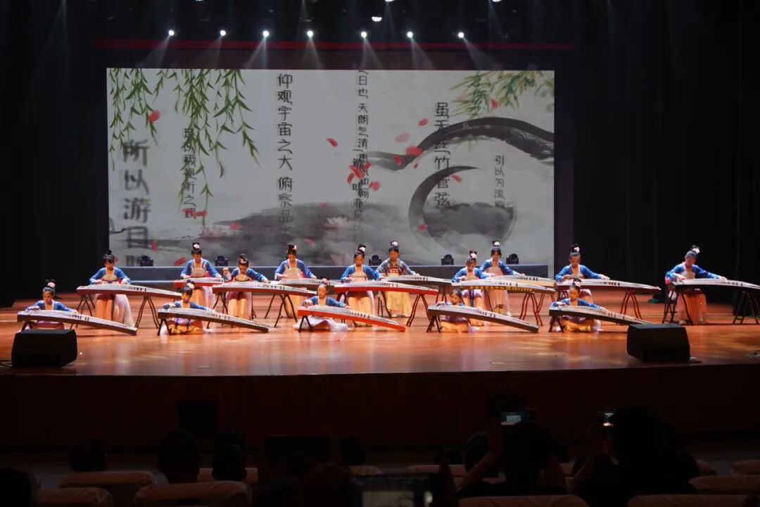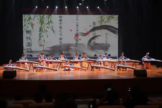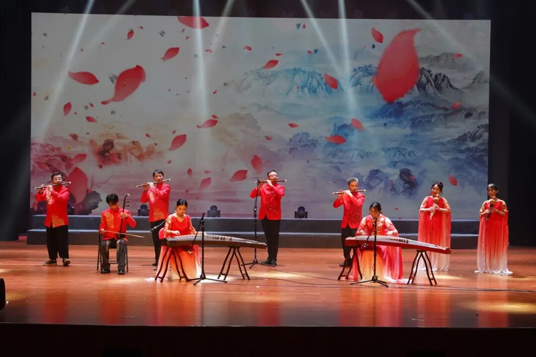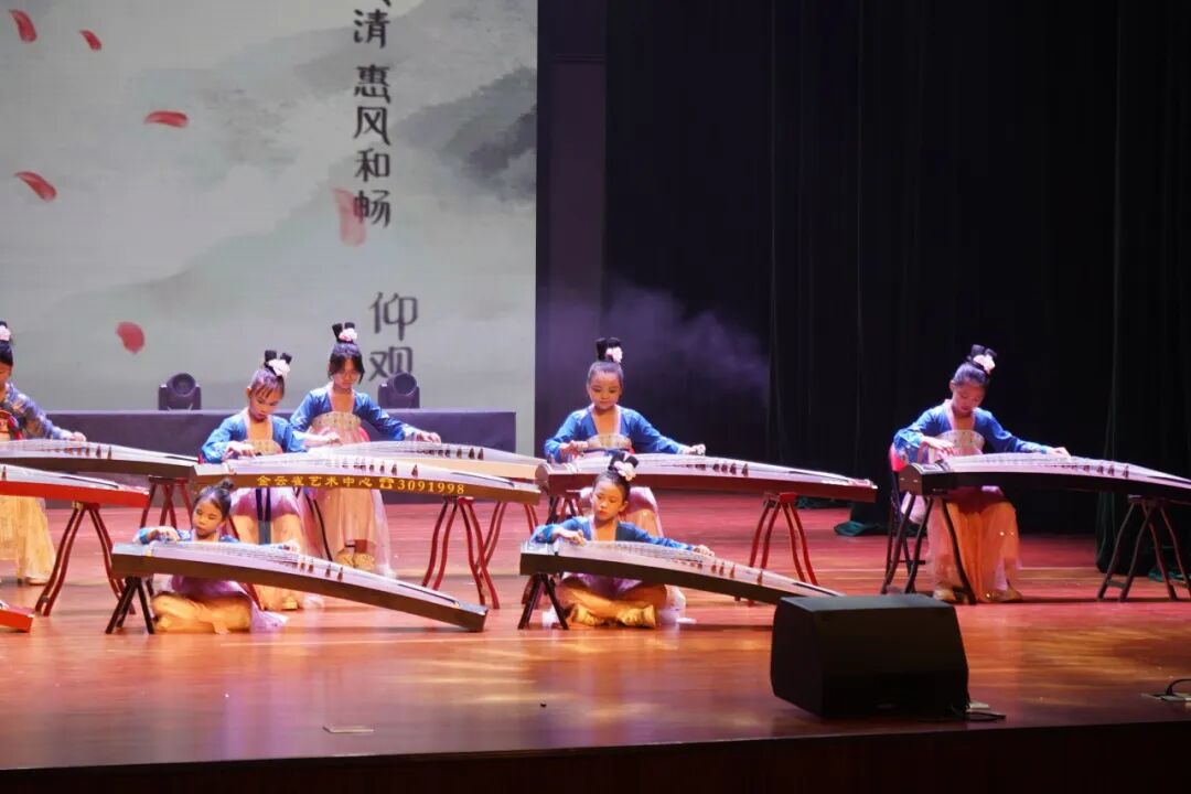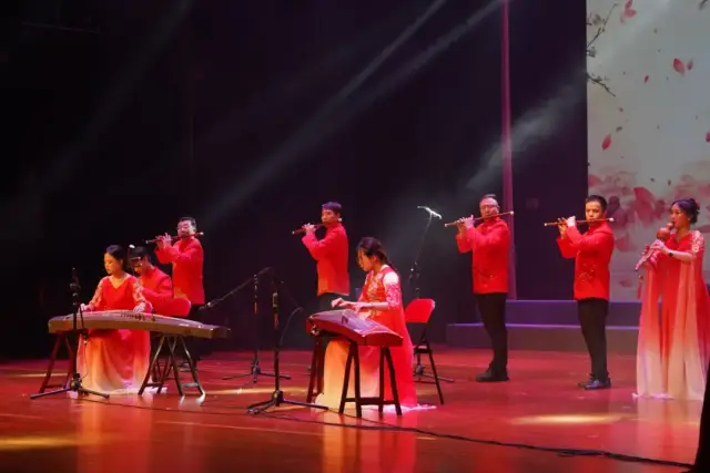 民乐演奏也是本次公益培训汇报演出的一大亮点。古筝合奏《三字经》《旱天雷》《春苗》、葫芦丝合奏《上春山》《荷塘月色》《听我说谢谢你》、竹笛合奏《歌声与微笑》《广阔的大地是我们的课堂》《扬鞭催马运粮忙》、民乐合奏《刀剑如梦》等节目先后上演,既有中华传统蒙学经典,又有风格迥异的流行金曲,还有地方特色的民族音乐,老师、学员齐上阵为观众呈现了视听与心灵的双重盛宴。演出过程中,观众不时报以热烈的掌声,现场气氛欢快、热烈、温馨。