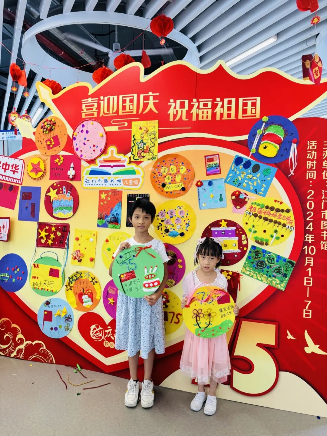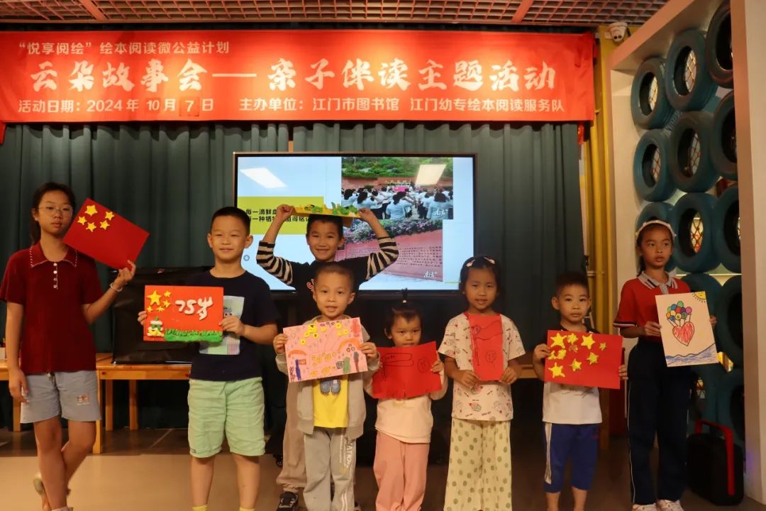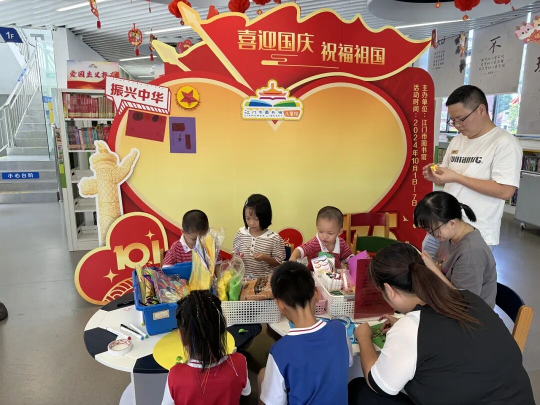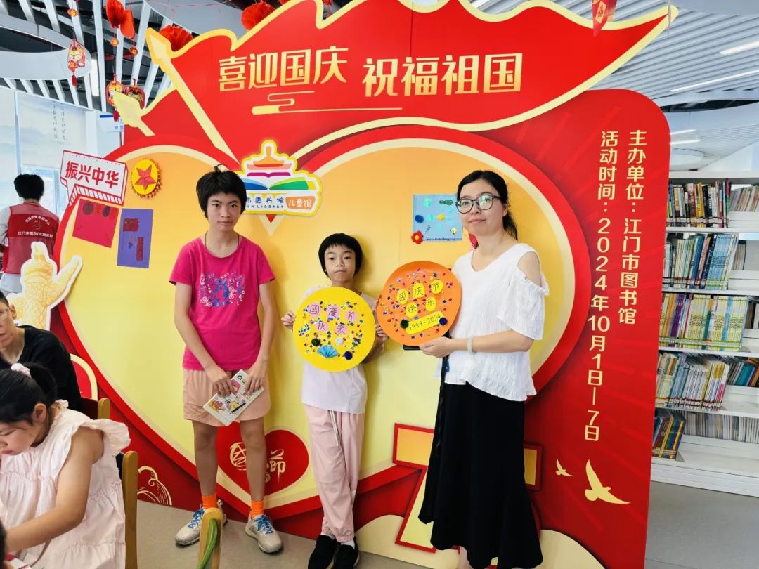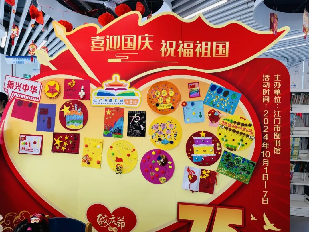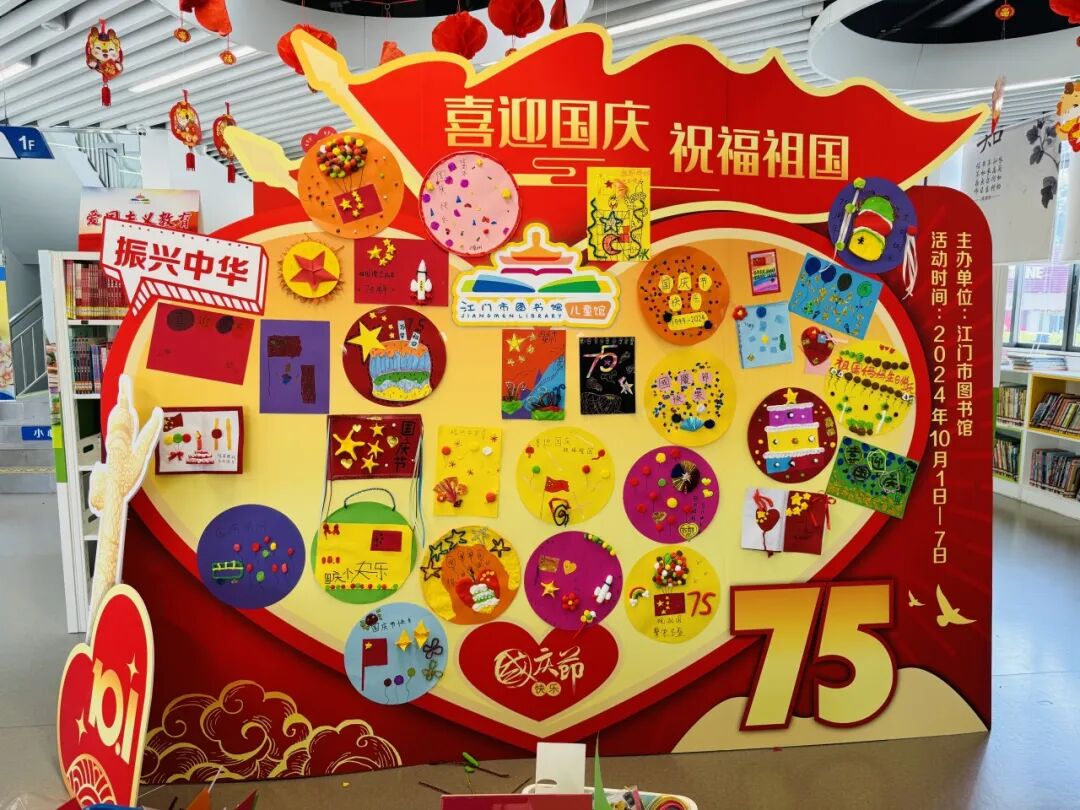 国庆长假,江门市图书馆精心筹备了展览、观影、故事会、祝福墙打卡等丰富多彩的线上线下阅读活动,吸引了约3万人次读者来馆阅读,在浓厚的节日氛围中体验阅读的快乐。其中“喜迎国庆,祝福祖国”创意祝福墙打卡点和红色绘本故事分享会,吸引众多少儿读者踊跃参与,共享欢乐时光。