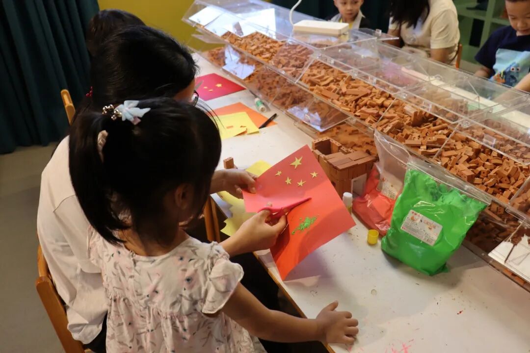 孩子们纷纷拿起手工制作材料,在祝福墙上粘下对祖国最诚挚的祝福。有质朴的“祖国妈妈生日快乐”、有深情的“祖国万岁”生日蛋糕、有直飞冲天的“中国航天火箭”等,每一幅佳作无不透露着孩子们纯真的爱国情怀和对祖国发展繁荣昌盛的感慨与自豪,饱含着对祖国母亲深深的热爱。
