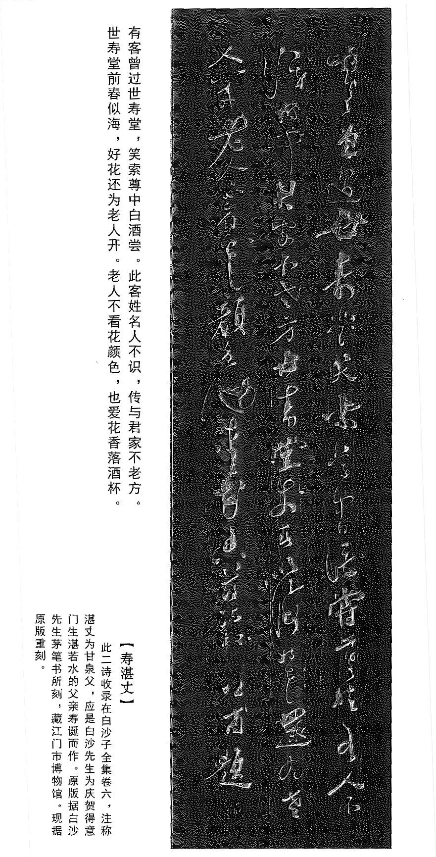 由于白沙先生的书法风格迥异于时流,崛起于岭南而独树一帜,让世人耳目为之一新。